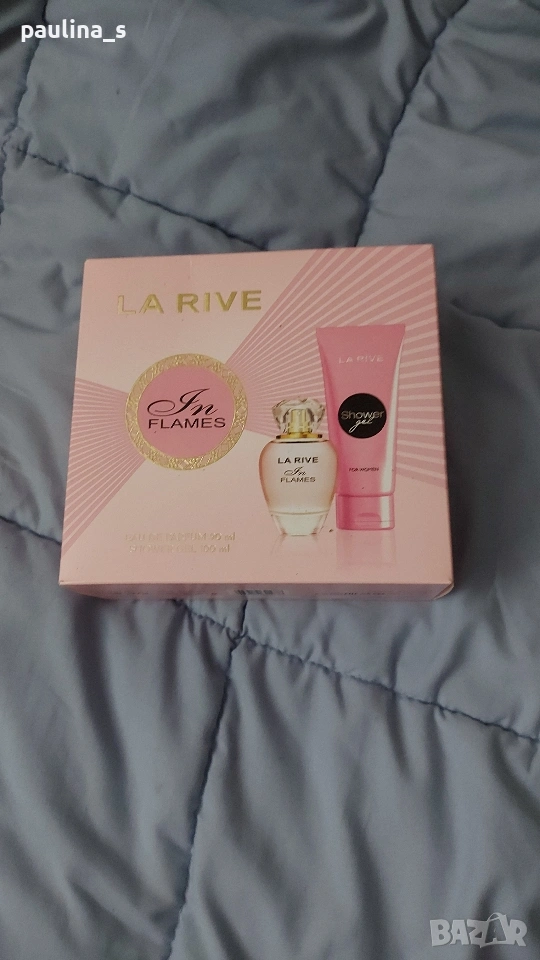 1️⃣. La Rive / In flames / 90ml EDP & 100ml shower gel. Цената е крайна, без пазарлъци 25 евра. Полски Подаръчен Комплект, наподобява на Олимпия на Пако Рабан, Старата версия. Ароматната пирамида е от Фрагрантика.