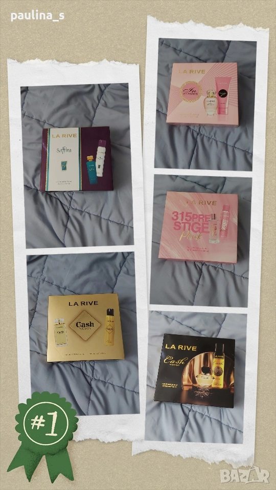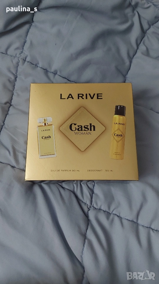 4️⃣ La Rive / Cash / 90ml EDP & 150ml deodorant. Полски Подаръчен Комплект, наподобява на Лейди Милиън на Пако Рабан, нова версия. Ароматната пирамида е от Фрагрантика. Цената е крайна, без пазарлъци 22 евра.