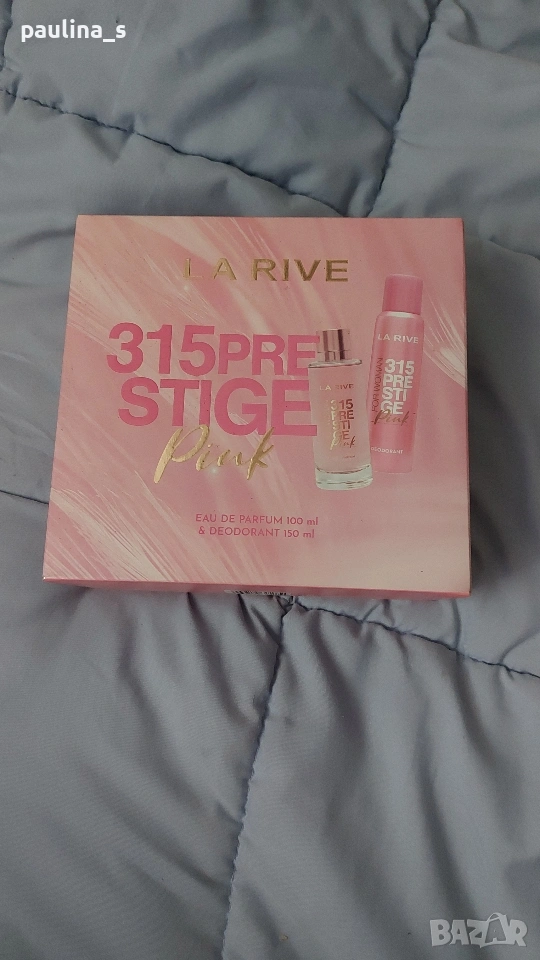 3️⃣. La Rive / 315 prestige pink / 100ml EDP & 150ml deodorant. Цената е крайна, без пазарлъци 25 евра. Полски Подаръчен Комплект, ароматната пирамида е от Фрагрантика.