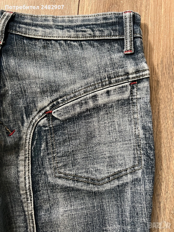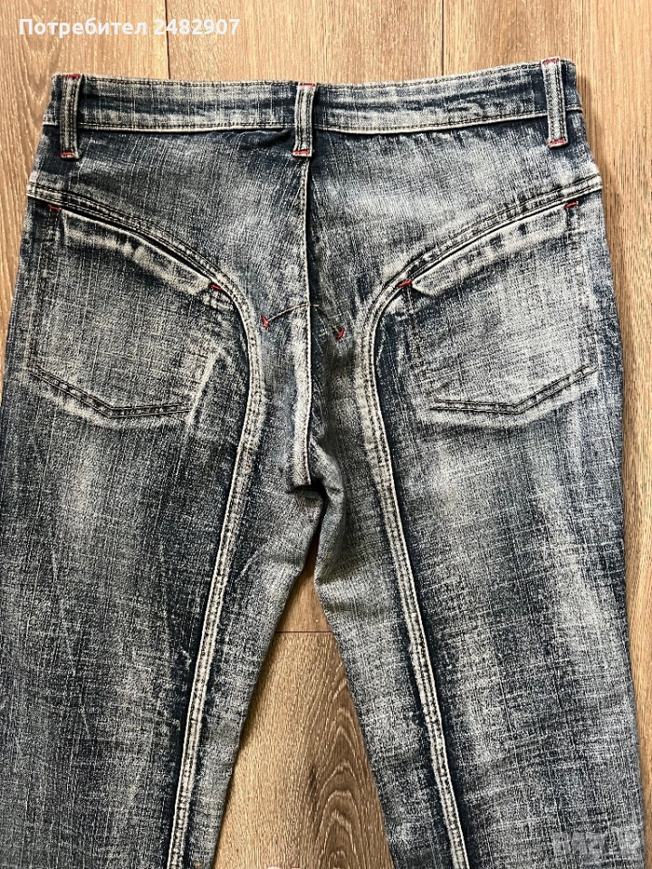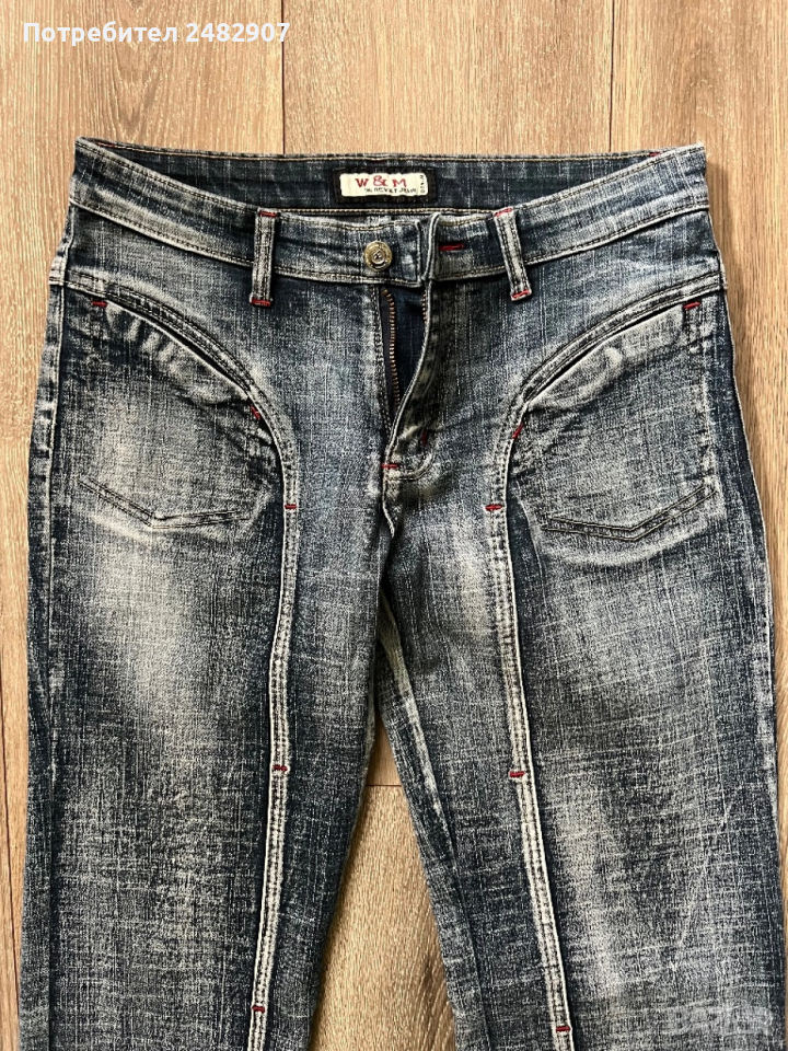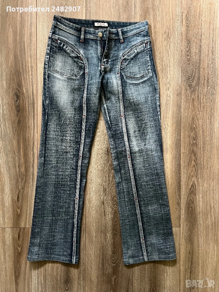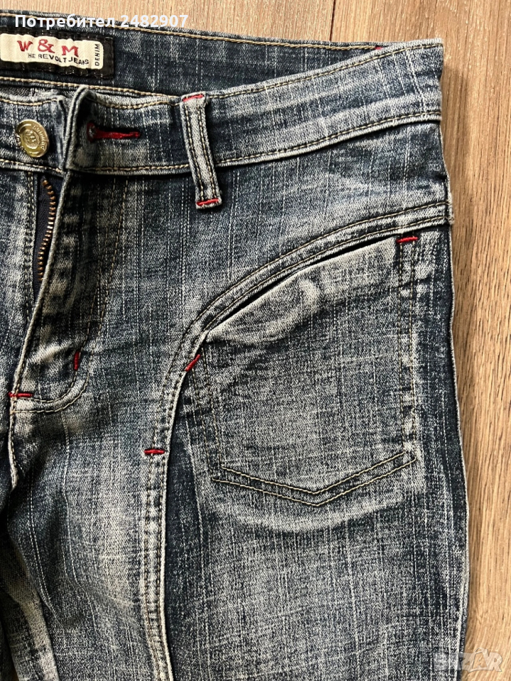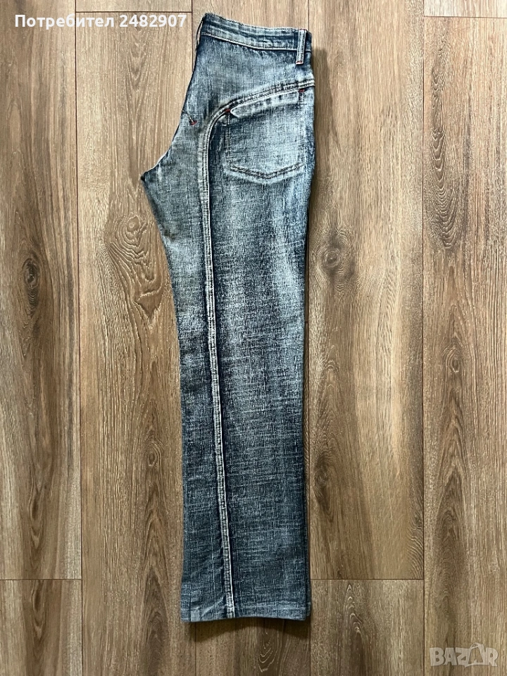 Тъмно сиви дамски дънки, размер 28. Съдържат 95 % памук и 5 % еластан. Ширина в талията - 37 см, дължина от талията до чатала - 22 см, дължина от талията до долу - 96 см, ширина на крачола в долната част - 22 см. Много запазени, почти не са използвани,