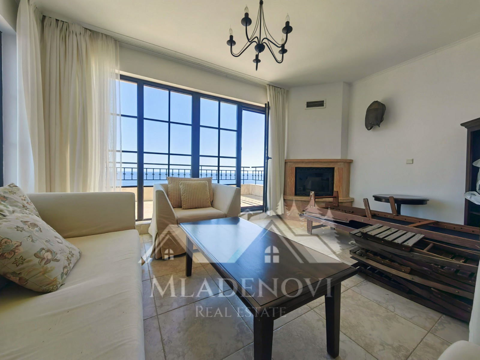 Жилището се състои от всекидневна с трапезария и кухненски кът, едно общо просторно помещение с камина и излаз на голяма открита тераса, две спални, едната, от които със собствен санитарен възел и джакузи, втора голяма баня с тоалетна и още две открити тераси. Жилището е изключително светло и слънчево, с три изложения и неповторима гледка. Продава се с наличното обзавеждане и оборудване. Таксата поддръжка е 13,90 Евро на кв.м. годишно.