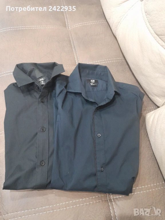 Продавам 2 бр. мъжки ризи размер М, едната тъмносиня , другата черна, 100% памук, без забележки