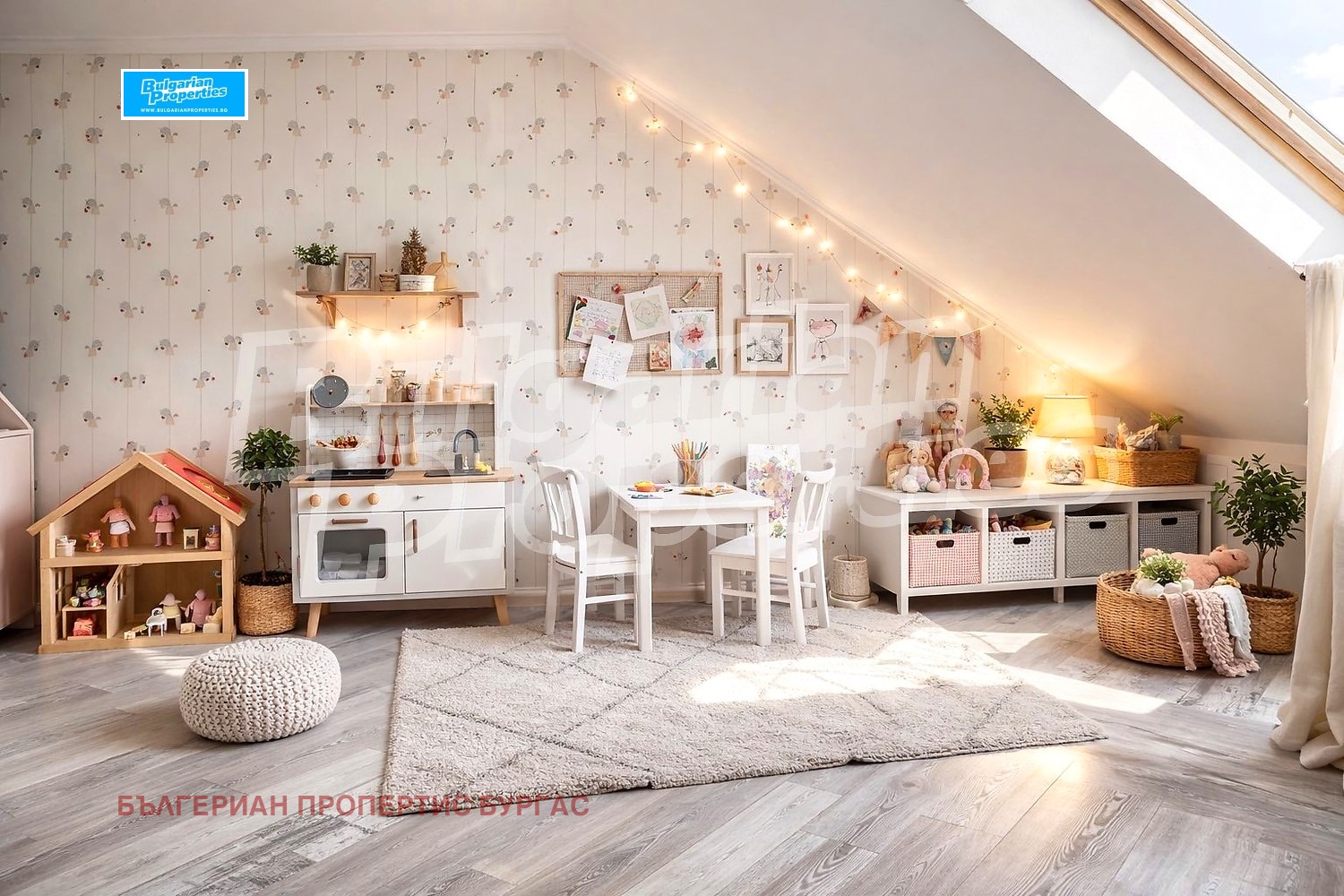 Имотът се предлага напълно обзаведен и оборудван с всички необходими електроуреди, климатици, подово отопление и електрическа камина, които създават уют през всички сезони. Интериорът включва качествени и подбрани мебели, включително антикварни елементи, които придават характер и индивидуалност на пространството.