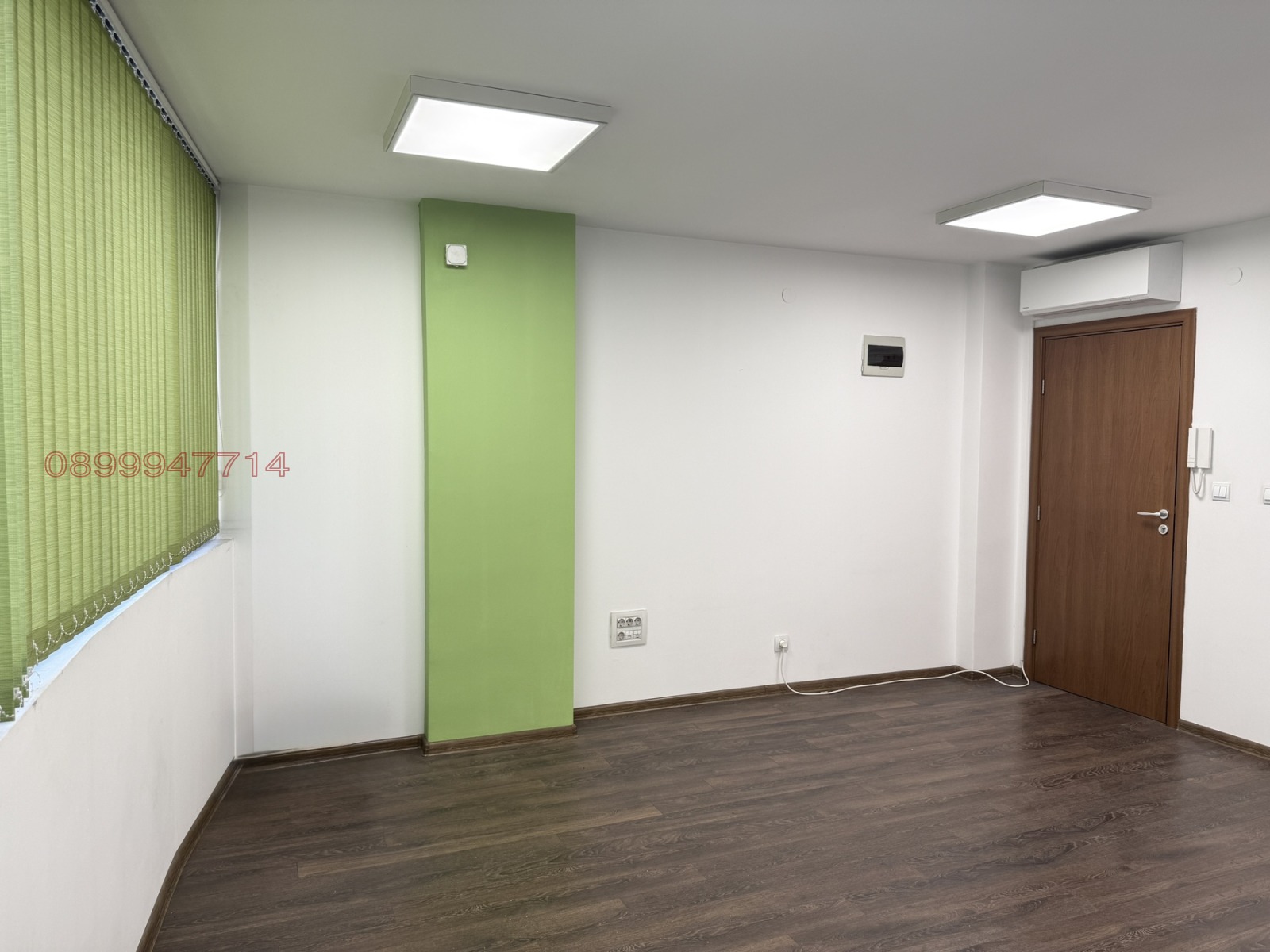Собственик предлага офис под наем на 2-ри етаж с обща площ от 36,65 кв.м. (застроена площ: 25,20 кв.м. + общи части: 1,23%). Помещението е НЕобзаведено, със стени, боядисани в бял латекс. Подовата настилка в основното помещение е ламинат. Офисът има климатик, който служи за охлаждане и отопление на помещението. На всеки етаж има по два общи санитарни възела.
