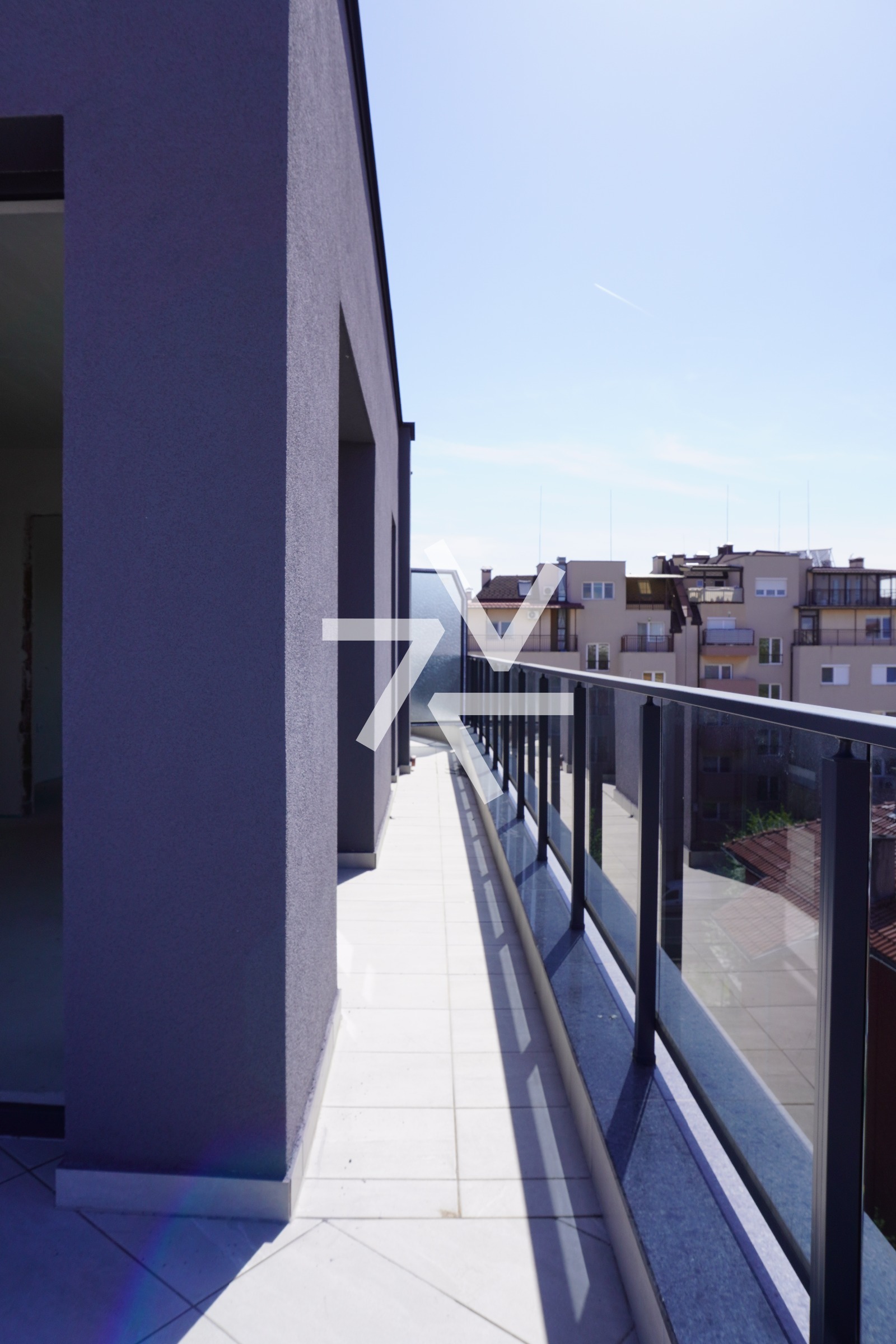Апартаментът е част от нова сграда с модерна визия и добре организирано вътрешно пространство. С обща площ от 132,34 кв.м, този имот комбинира компактно вътрешно разпределение с мащабно външно пространство, което рядко се среща при двустайни апартаменти.