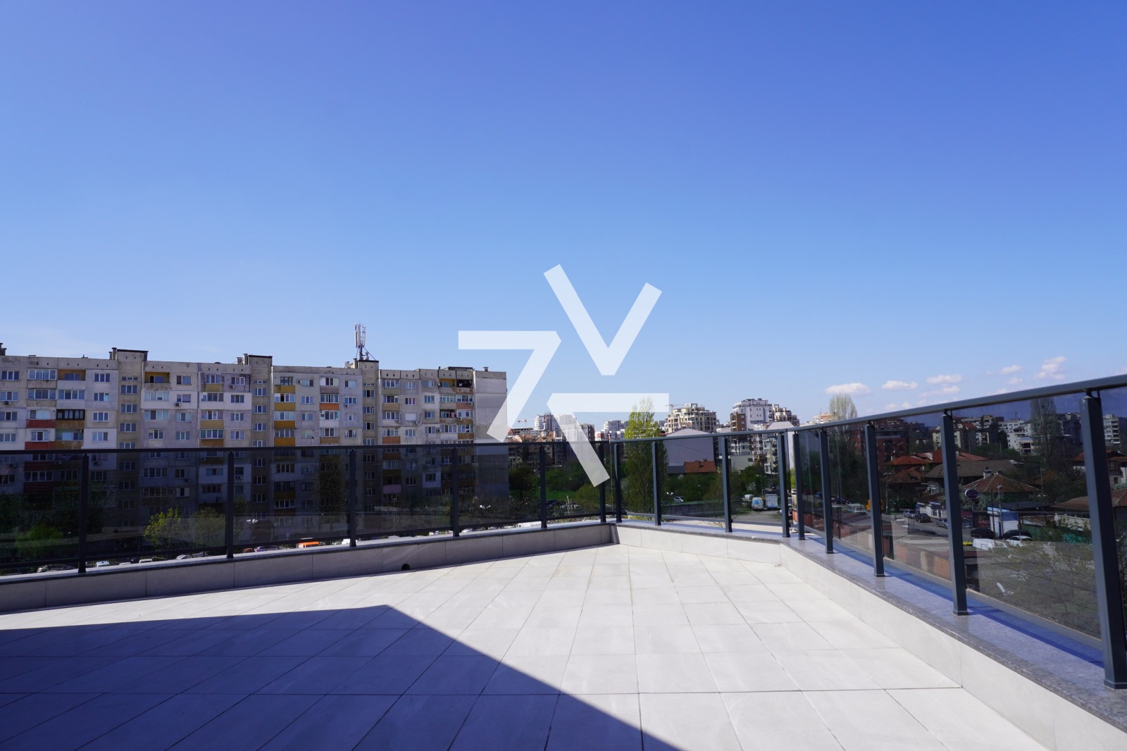 Силното предимство тук е покривната тераса с площ от 74,15 кв.м., която е изцяло за лично ползване. Тя дава реална възможност за обособяване на външна зона място за хранене, отдих или зелена площ. От нея се открива панорамна гледка към целия Люлин, без визуални прегради от високо застрояване.