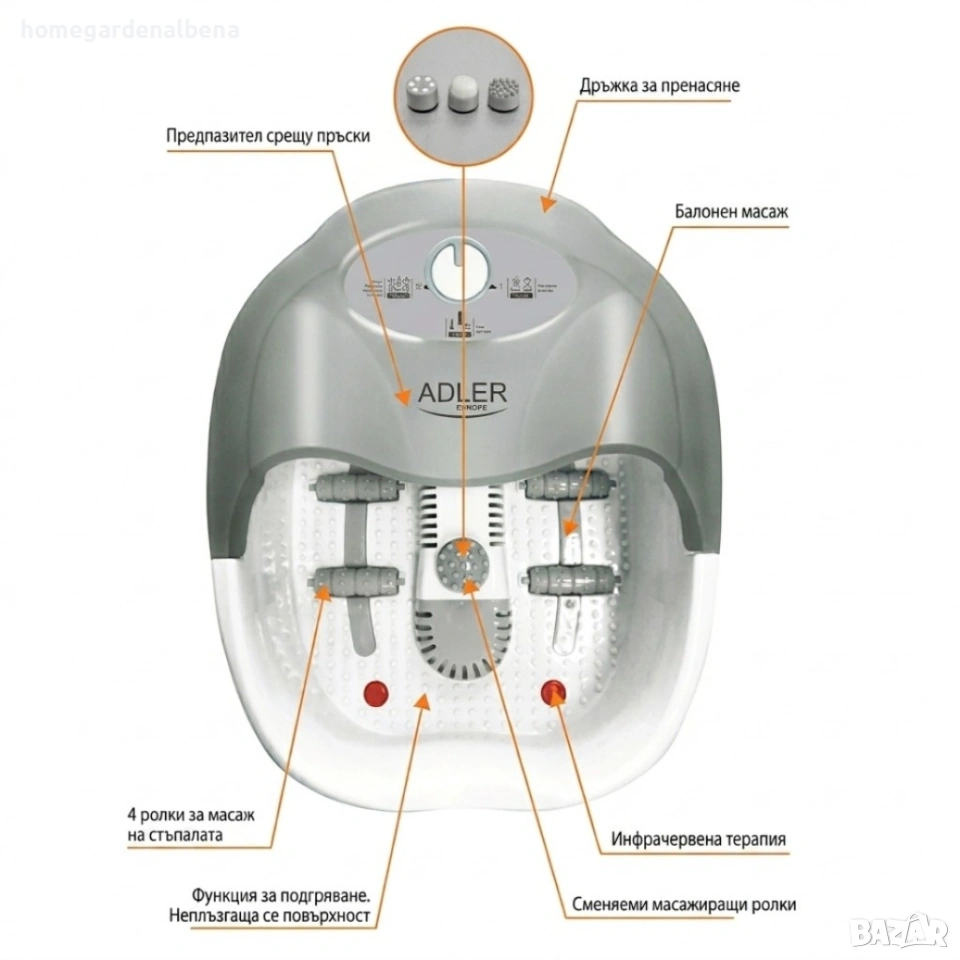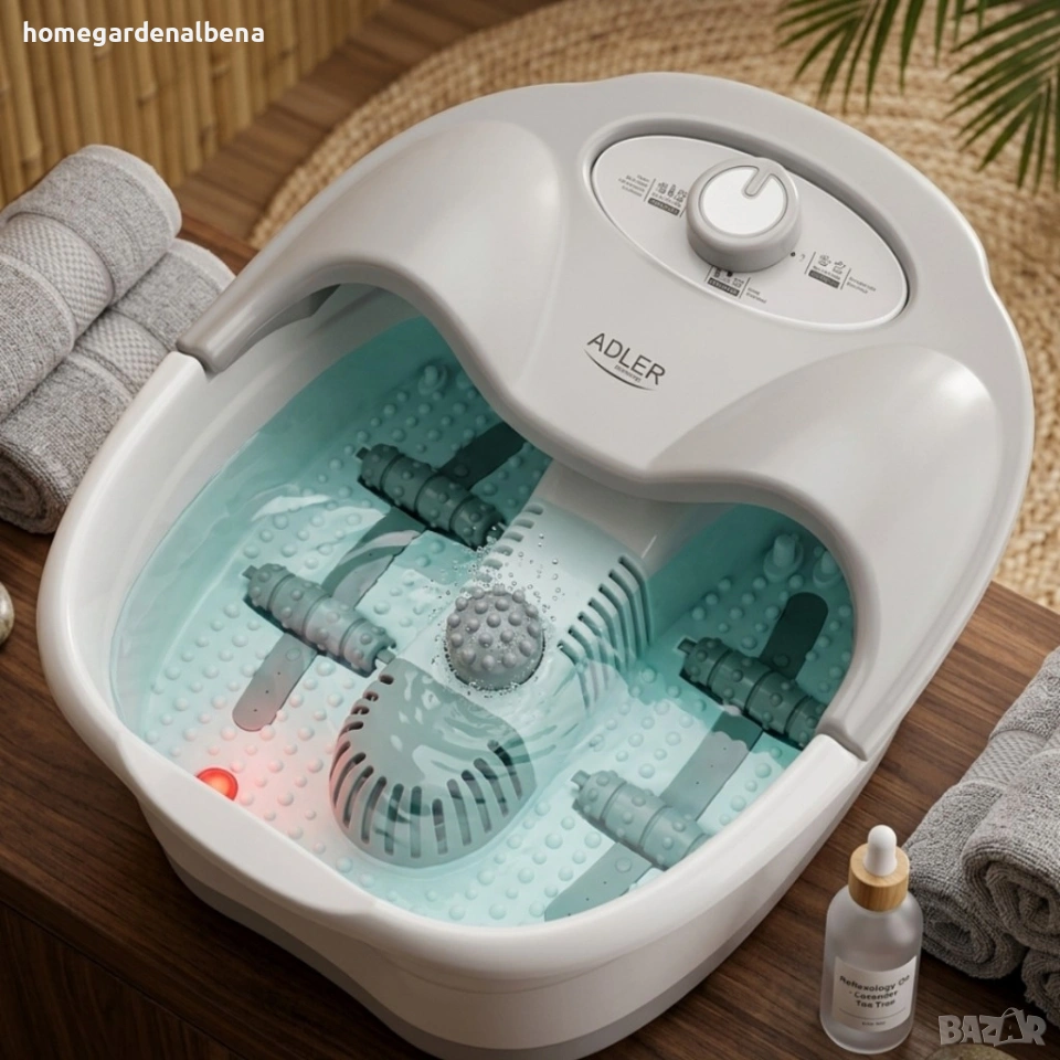 Технически характеристики на Многофункционален СПА масажор за крака 4в1 – балонен, вибрационен и топлинен масаж с инфрачервена терапия Основни технически данни, които гарантират надеждна и ефективна работа: Мощност: 80W Размери: 34 x 41 x 21.5 см Материал на корпуса: пластмаса; цвят: бял/сив Дължина на захранващия кабел: 149 см; тип щепсел: C Функции: балонен масаж, вибрации, инфрачервена топлина, поддържане на температурата, 4 масажни ролки, 3 сменяеми приставки, въздушни дюзи, индикатор за вода, противоплъзгащи крачета