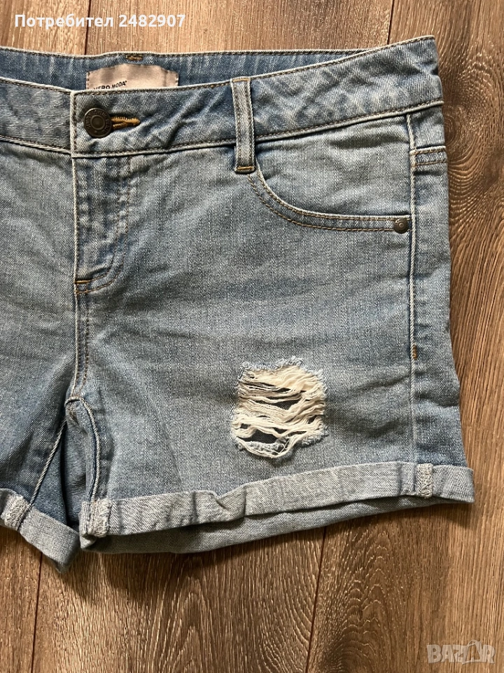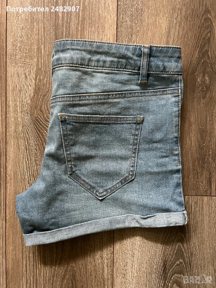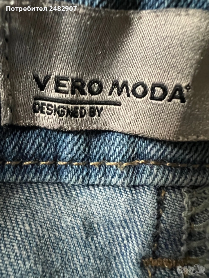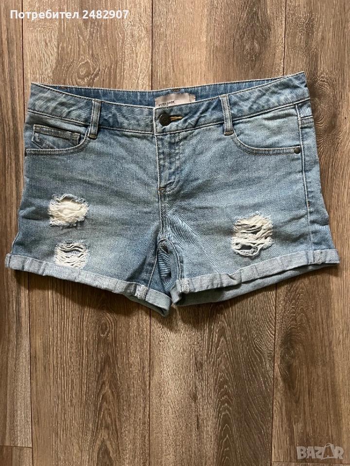 Къси дамски дънкови панталони VERO MODA, размер М. Съдържат 99 % памук и 1 % еластан. Ширина в талията - 41 см, дължина от талията до чатала - 19,5 см, дължина от талията до долу - 28 см, ширина на крачола в долната част - 28 см. Много запазени, почти не са използвани.