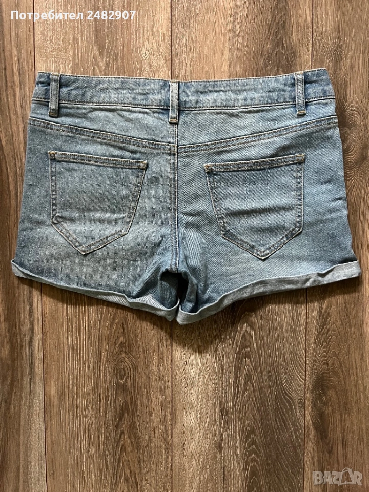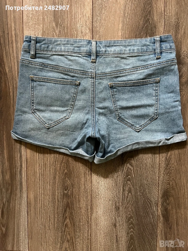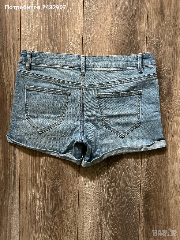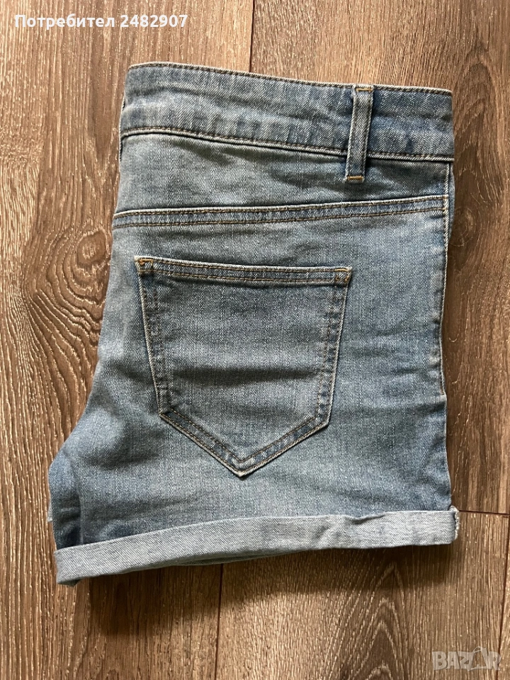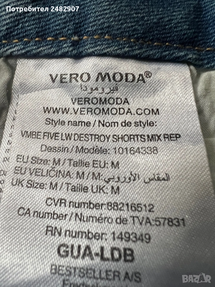 Къси дамски дънкови панталони VERO MODA, размер М. Съдържат 99 % памук и 1 % еластан. Ширина в талията - 41 см, дължина от талията до чатала - 19,5 см, дължина от талията до долу - 28 см, ширина на крачола в долната част - 28 см. Много запазени, почти не са използвани.
