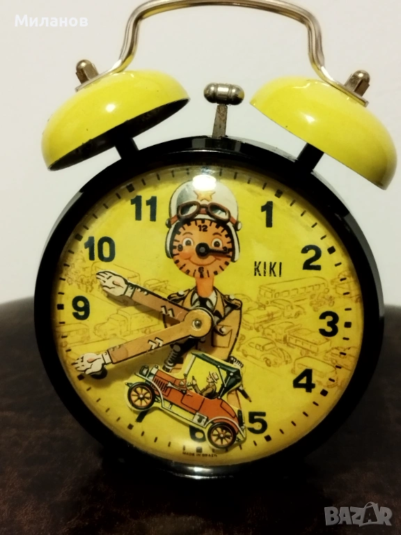 Стар механичен анимиран бразилски будилник Kiki.Отремонтиран и смазан, работи и звъни.В отлично състояние.Диаметър-108 милиметра.Номер на часовника-139781