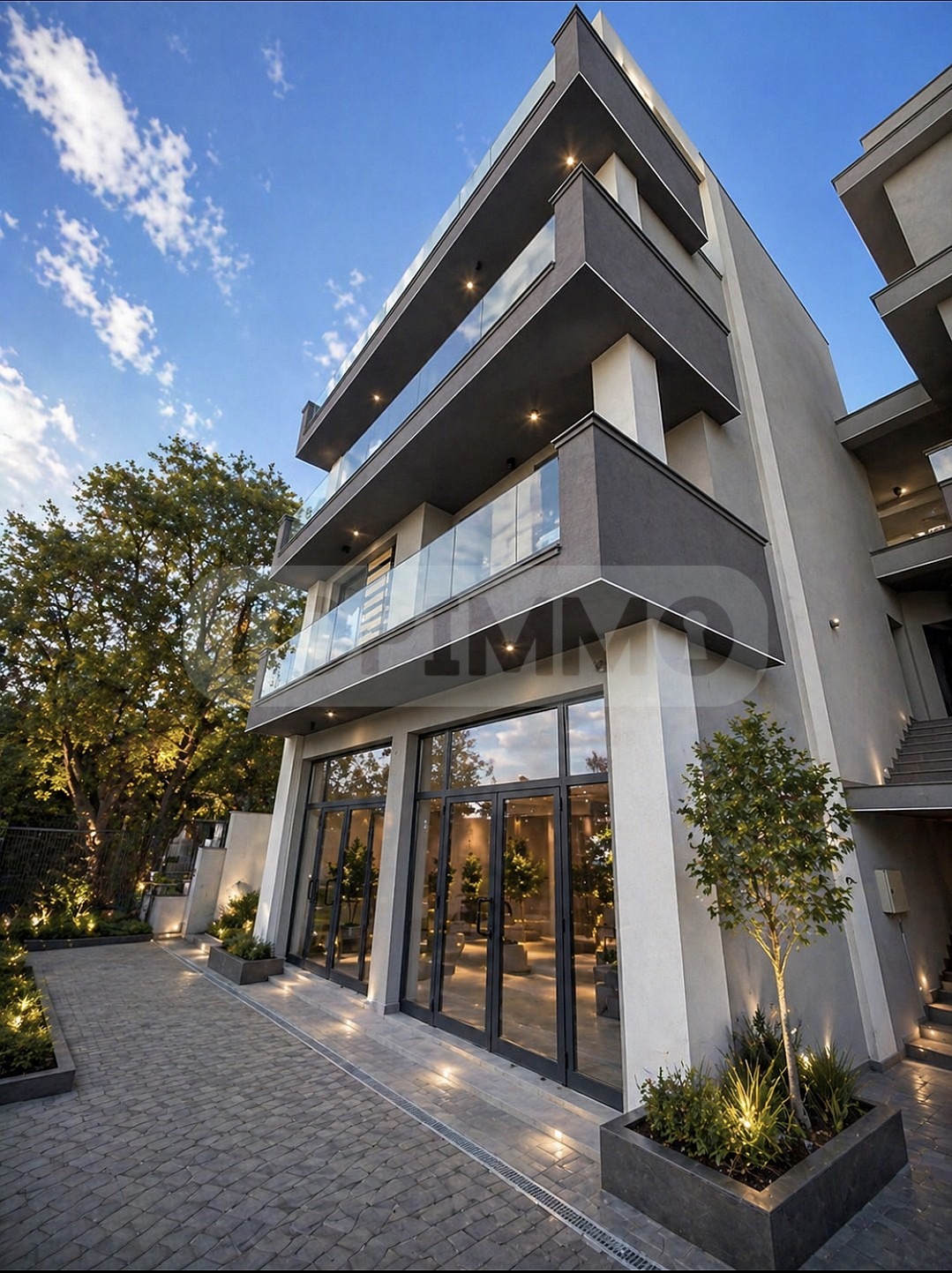 Имотът е раположен на партерен етаж, с обща площ 75,08 кв.м. ( чиста 58 кв.м.) и предлага източна гледка към парк. Състои се от два входа, общо помещение, санитарно помещение, склад.