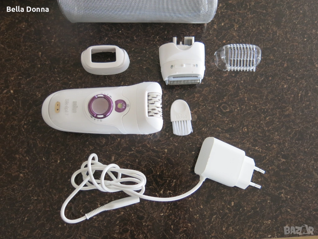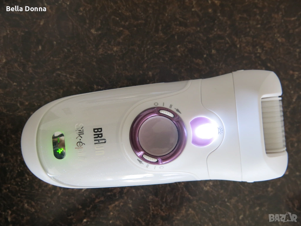 Безжичен епилатор Braun Silk-Epil 7-700 SensoSmart. Използван, но вмного добро, чисто състояние. Работи без проблем. Батерията издържа само около 10 минути, затова цената е такава.