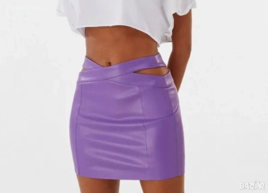 Лилава кожена пола BERSHKA, размер S. Полата е нова!