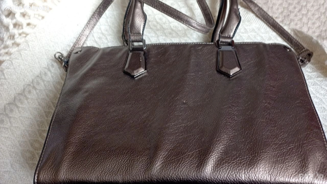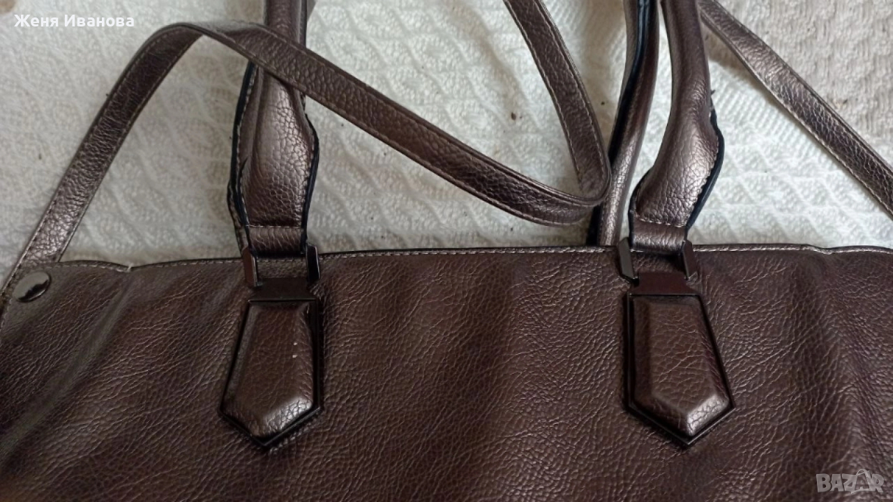 Дамска чанта цвят кафяв металик с размери: 34см на 25см и дъно 15см
