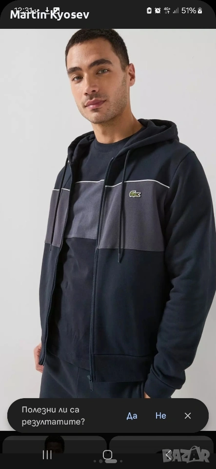 Черно горнище Lacoste, снимка 1 - Суичъри - 54358151 Черно горнище Lacoste, снимка 2 - Суичъри - 54358151 1/2