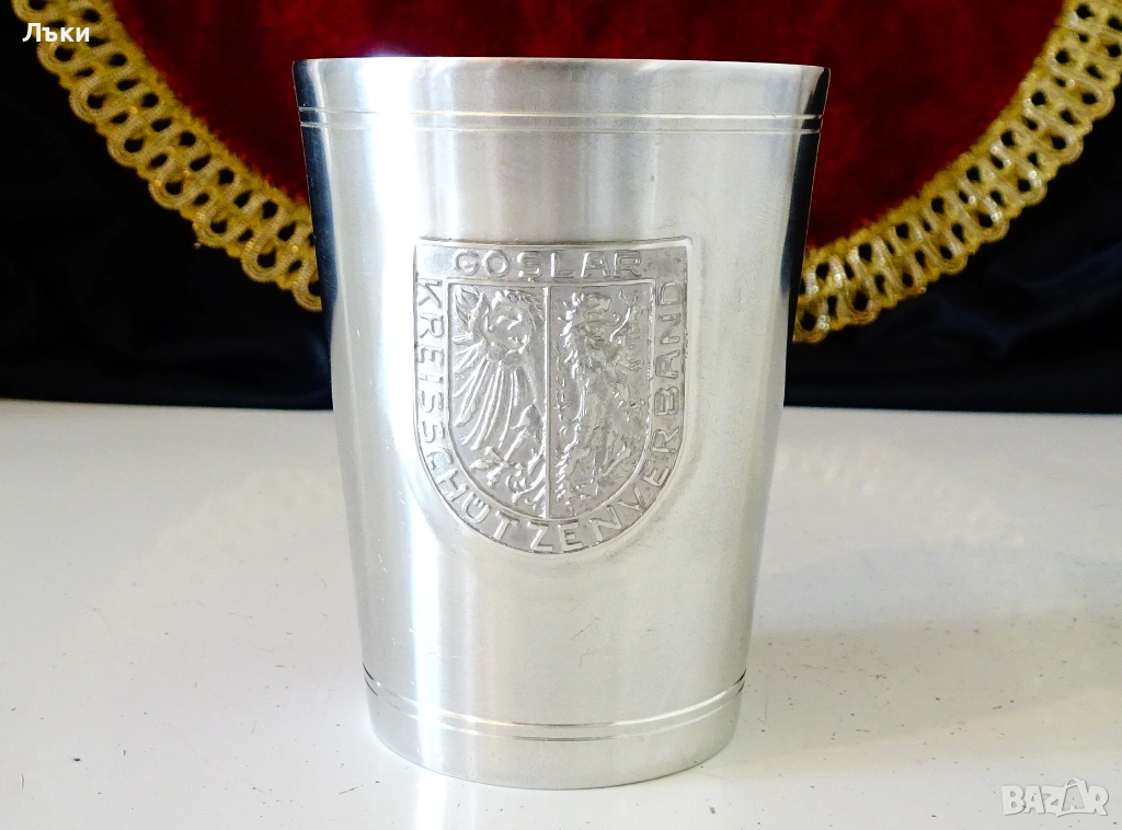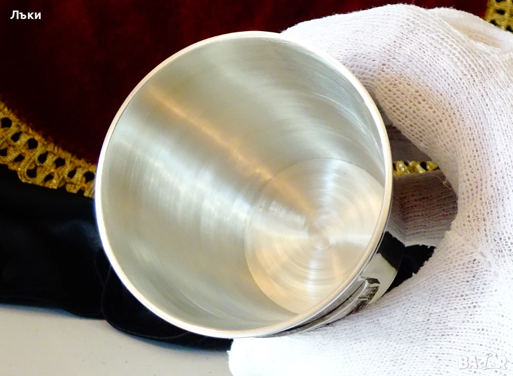 Стара немска калаена чаша за вино,майсторска ръчна изработка