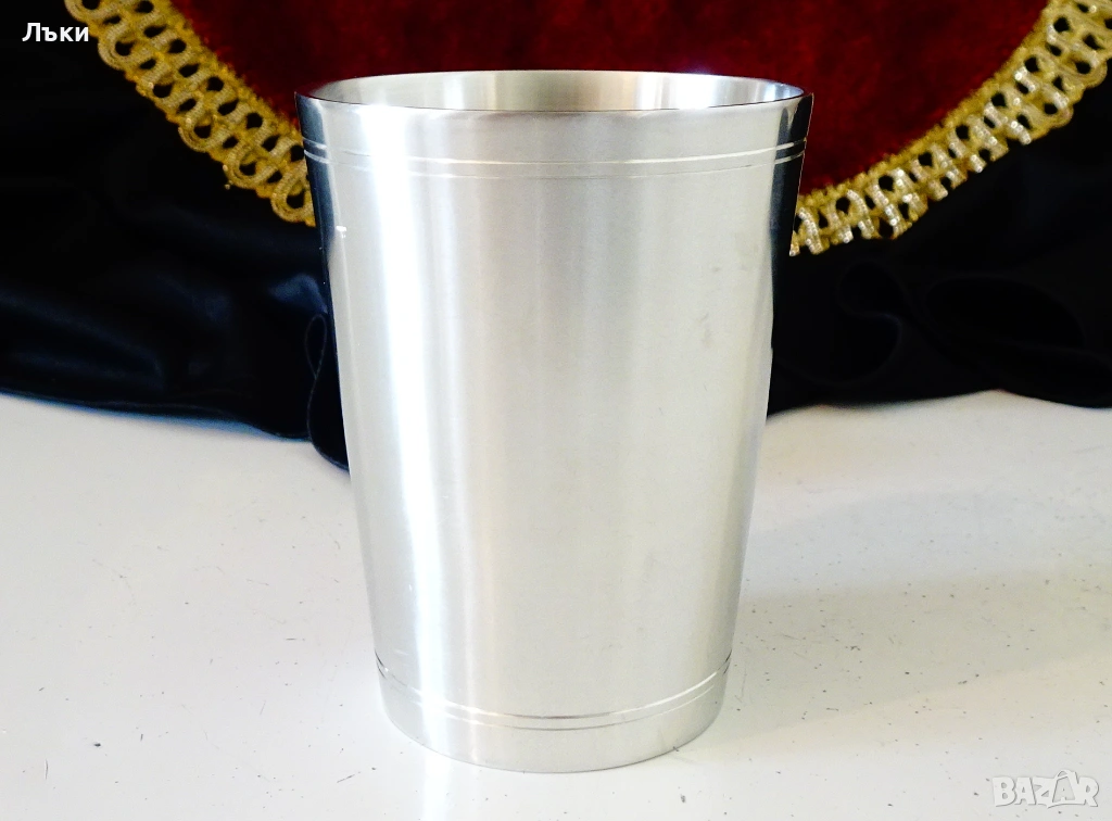 щит.Височина 8 см.,диаметър 6 см.,тегло 150 гр.,вместимост 150 мл.