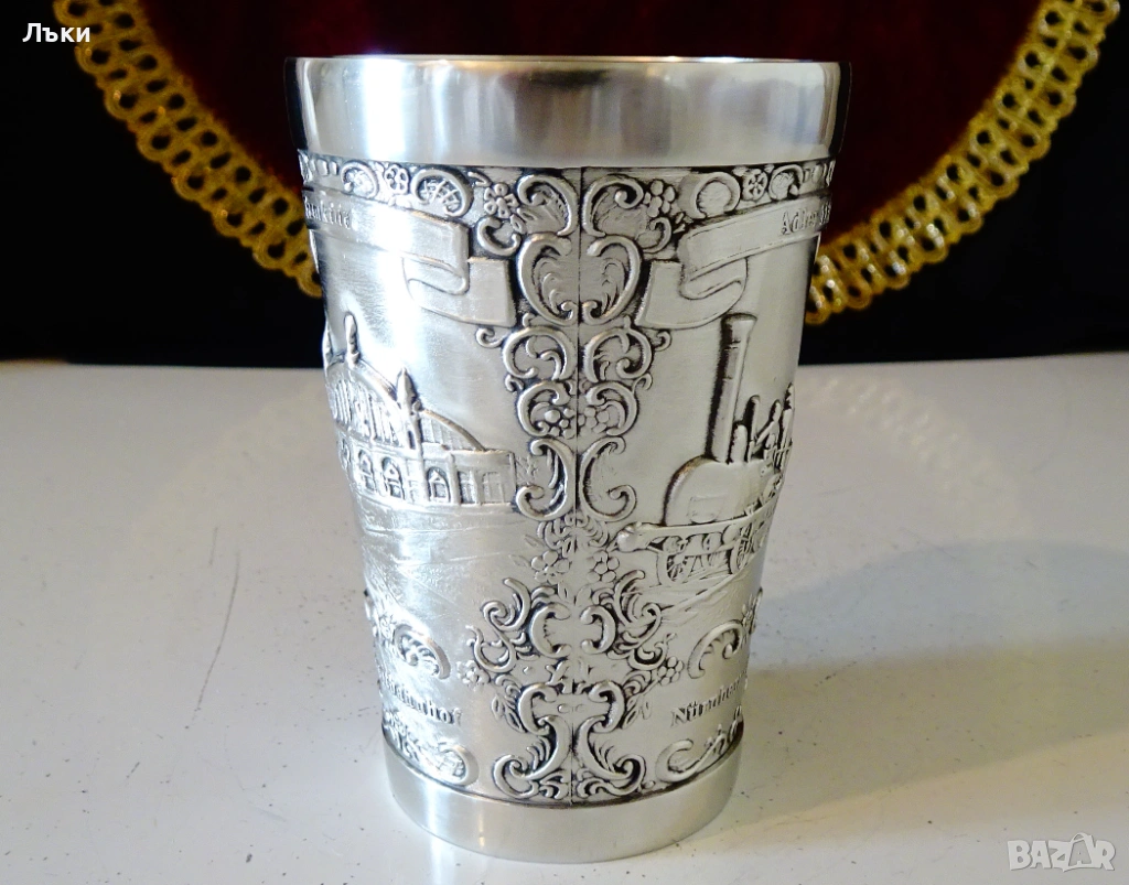 Стара немска калаена чаша за вино,майсторска ръчна изработка