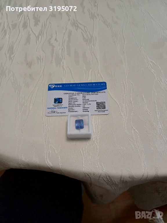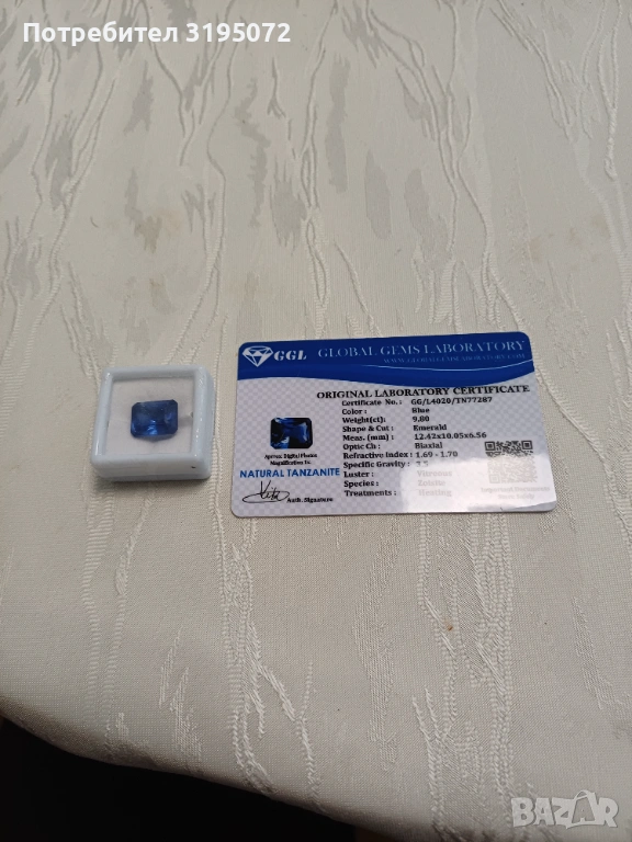 Продавам сертифициран натурален танзанит9,80кт → Обява 54358913