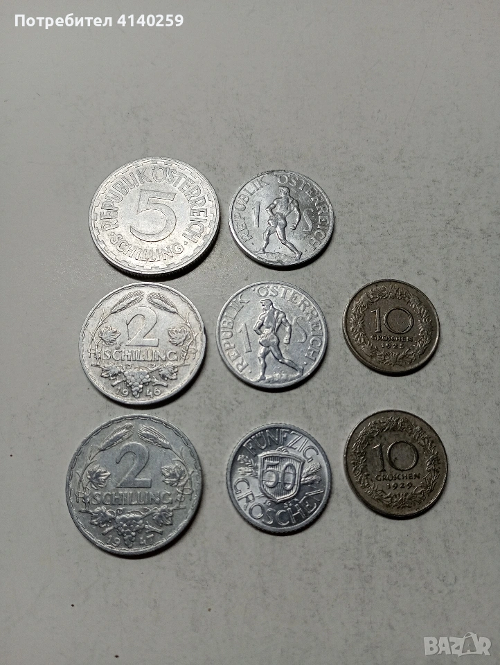 АВСТРИЯ МОНЕТА 5 ШИЛИНГА 1952 Г 2 ШИЛИНГА 1946-1947 Г 1 ШИЛИНГ 1947-1957 Г 50 ГРОША 1952 Г АЛУМИНИЙ 10 ГРОША 1925-1929 Г СЪСТОЯНИЕ ОТЛИЧНО ЦЕНА ЗА 8 БРОЯ ПОЛУЧАВАТЕ СНИМАНИТЕ МОНЕТИ РАЗГЛЕДАЙТЕ ДРУГИТЕ МИ ОБЯВИ ДА КОМБИНИРАТЕ ДОСТАВКА ЕКОНТ ЗА ВАРНА ЛИЧНО