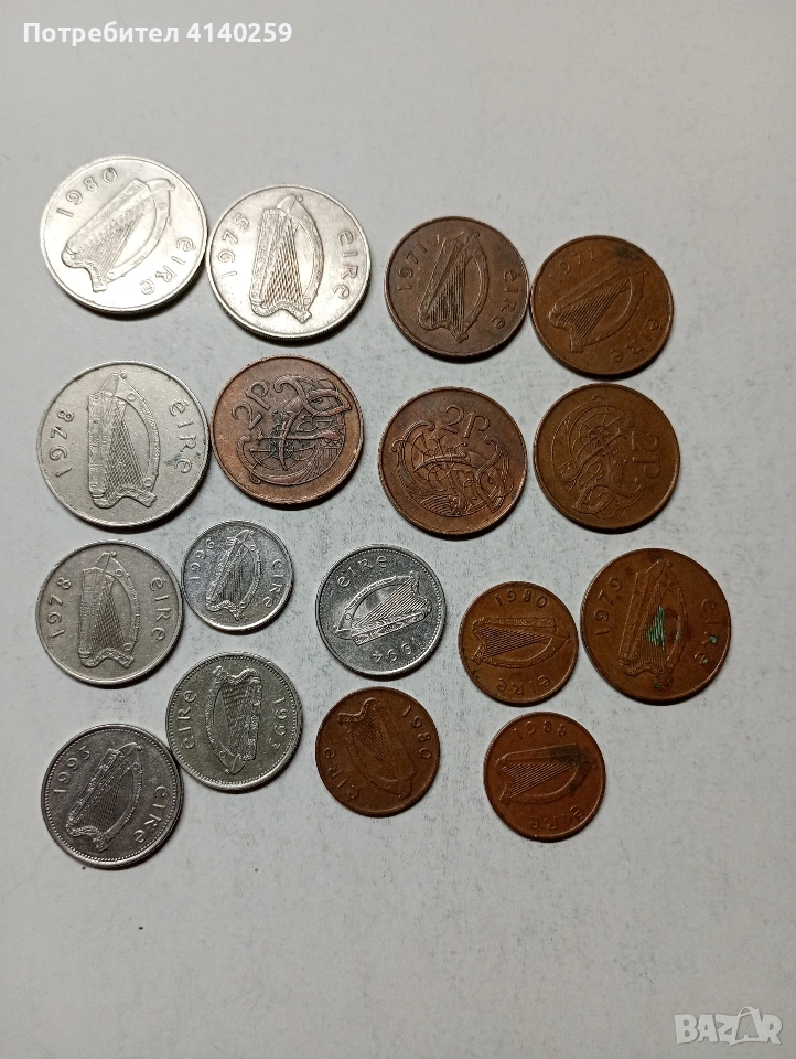ИРЛАНДИЯ МОНЕТИ ЛОТ РАЗЛИЧНИ НОМИНАЛИ ГОДИНИ ЦЕНА 17 БРОЯ ПОЛУЧАВАТЕ СНИМАНИТЕ МОНЕТИ РАЗГЛЕДАЙТЕ ДРУГИТЕ МИ ОБЯВИ ДА КОМБИНИРАТЕ ДОСТАВКА ЕКОНТ ЗА ВАРНА ЛИЧНО