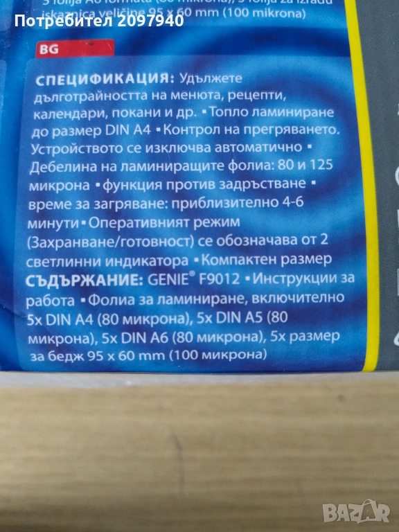 Ламинатор Genie, снимка 1 - Друго - 54362521 Ламинатор Genie, снимка 2 - Друго - 54362521 Ламинатор Genie, снимка 3 - Друго - 54362521 Ламинатор Genie, снимка 4 - Друго - 54362521 Ламинатор Genie, снимка 5 - Друго - 54362521 Ламинатор Genie, снимка 6 - Друго - 54362521 Ламинатор Genie, снимка 7 - Друго - 54362521 1/7