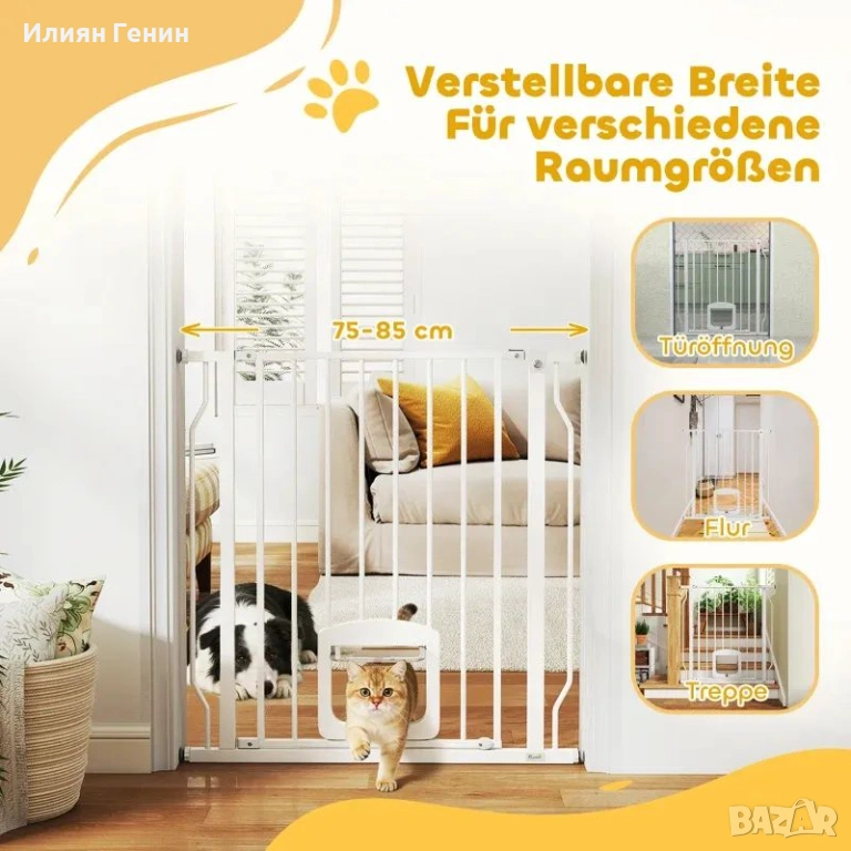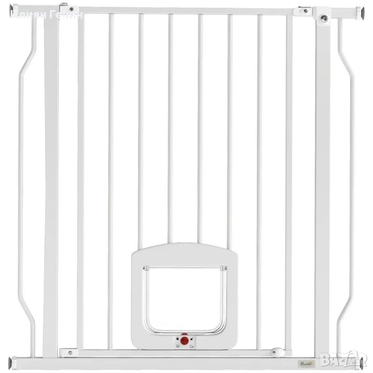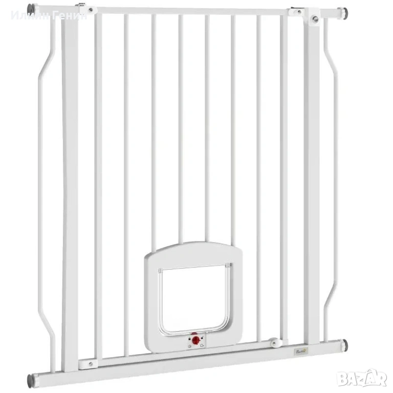 PawHut Стълбищна порта, Предпазна порта за врата с котешка клапа, Не е необходимо пробиване, 75-85 см, Бяла - 40.00 €.