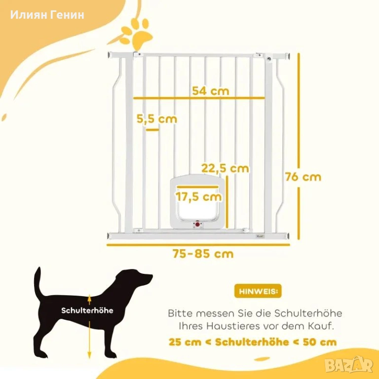 ✔ Разстоянието между прътите на вратата е 5,5 см, за да се предотврати преминаването на малки домашни любимци.