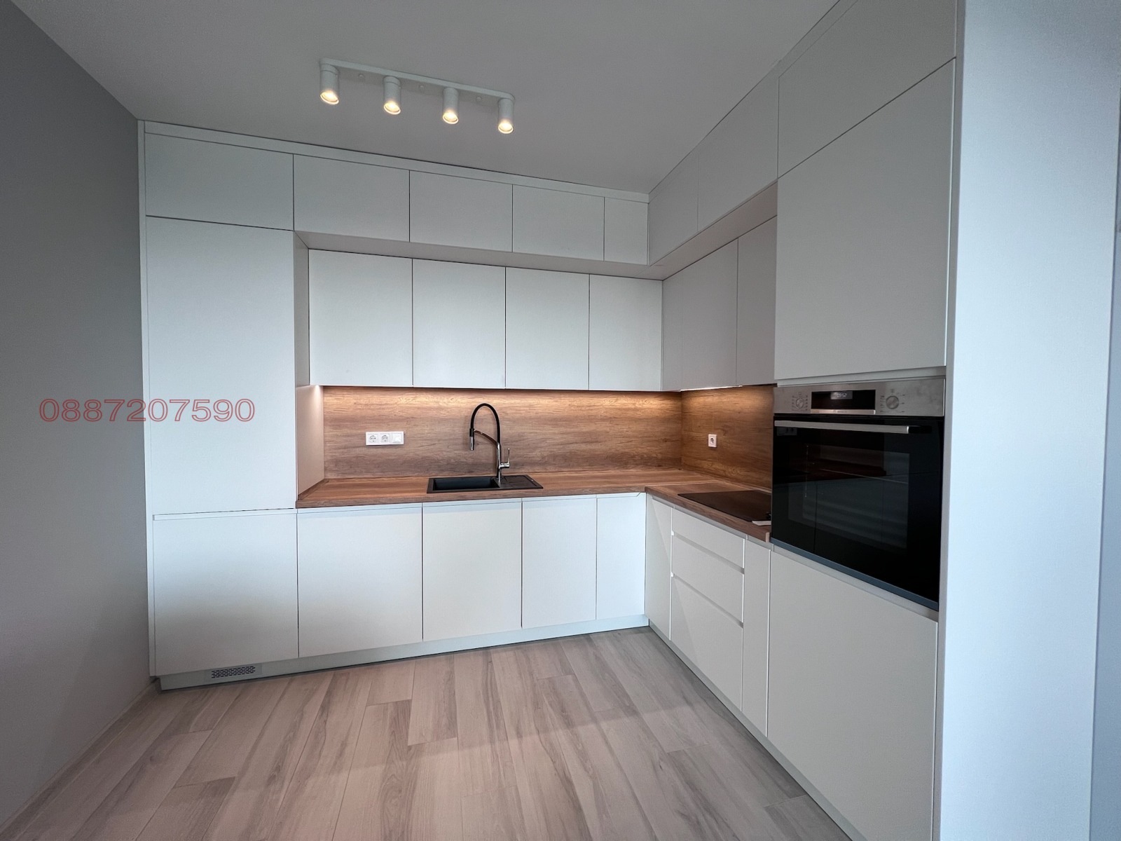 Oтдаваме под наем двустаен апартамент в Младост 4 в нова сграда в затворен комплекс ет. 8, 69.8 кв. м., газово локално отопление, климатик и отлична локация до Бизнес Парк София и метростанция Бизнес Парк. Апартамента се отдава заедно с подземен гараж (27.3 кв.м.) и мазе (2.9 кв.м.).