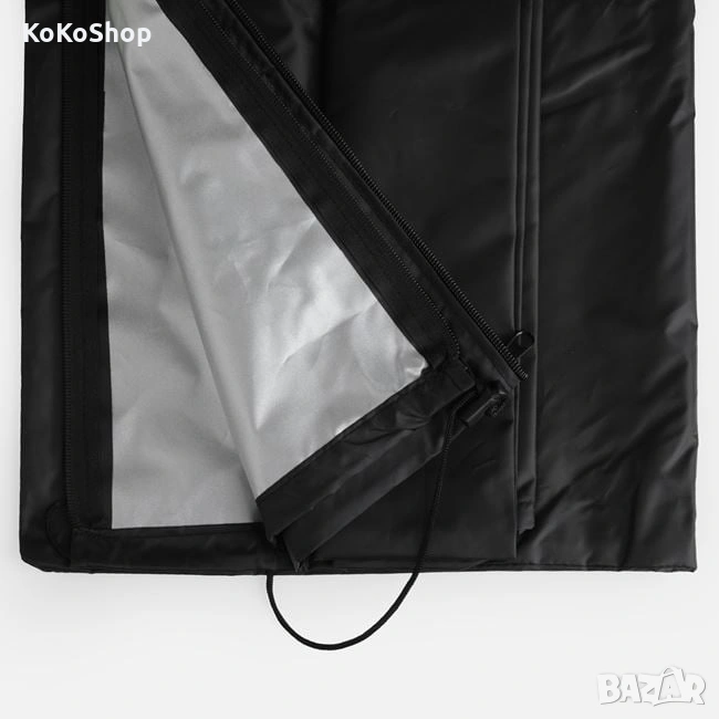 В черен цвят, изработено от издръжлив материал, покрива чадъра и го предпазва от слънце, дъжд, прах и влага.