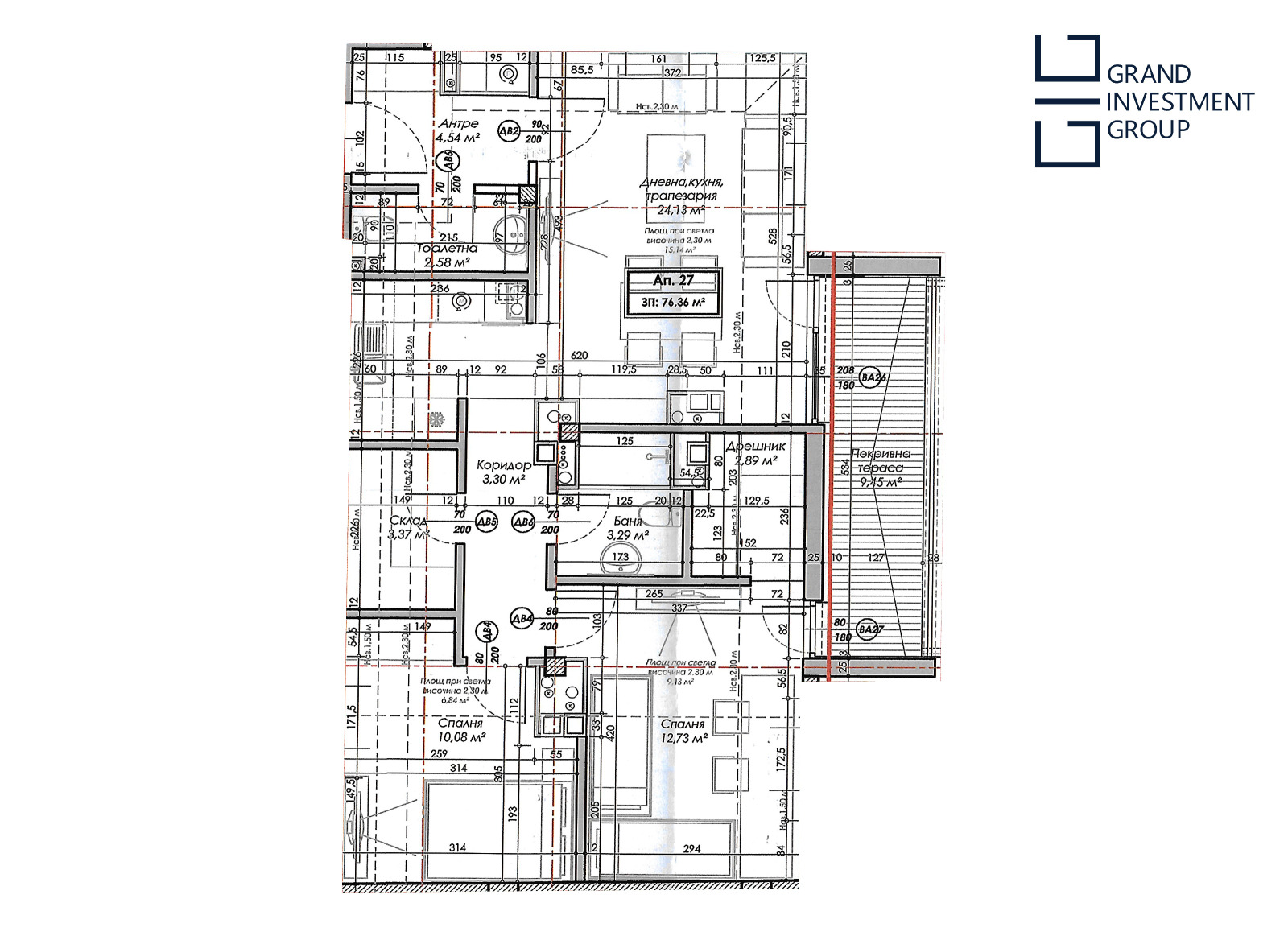 Предлаганият имот е с обща площ от 99,98 кв.м, с много добро вътрешно разпределение, правилни помещения и отлична възможност както за лично ползване, така и за покупка с инвестиционна цел. Площта на терасите се ценообразува по 1000 евро/кв.м.