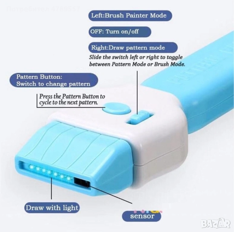 Четката с флуоресцентна светлина за рисуване е идеалният комплект за всяко дете, което обича да рисува и експериментира с нови идеи. Благодарение на светлината и шаблоните, децата ще могат да създават креативни и оригинални рисунки, развивайки важни умения за тяхното бъдеще.