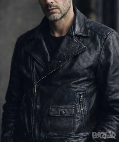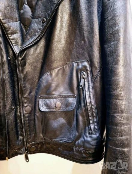 Оригинално яке от естествена кожа Viktor & Rolf, размер 54, отговаря на L-XL. С плътна капитонирана подплата. Черен цвят, единият джоб и горната част на гърба са тъмносини. Много е красиво.