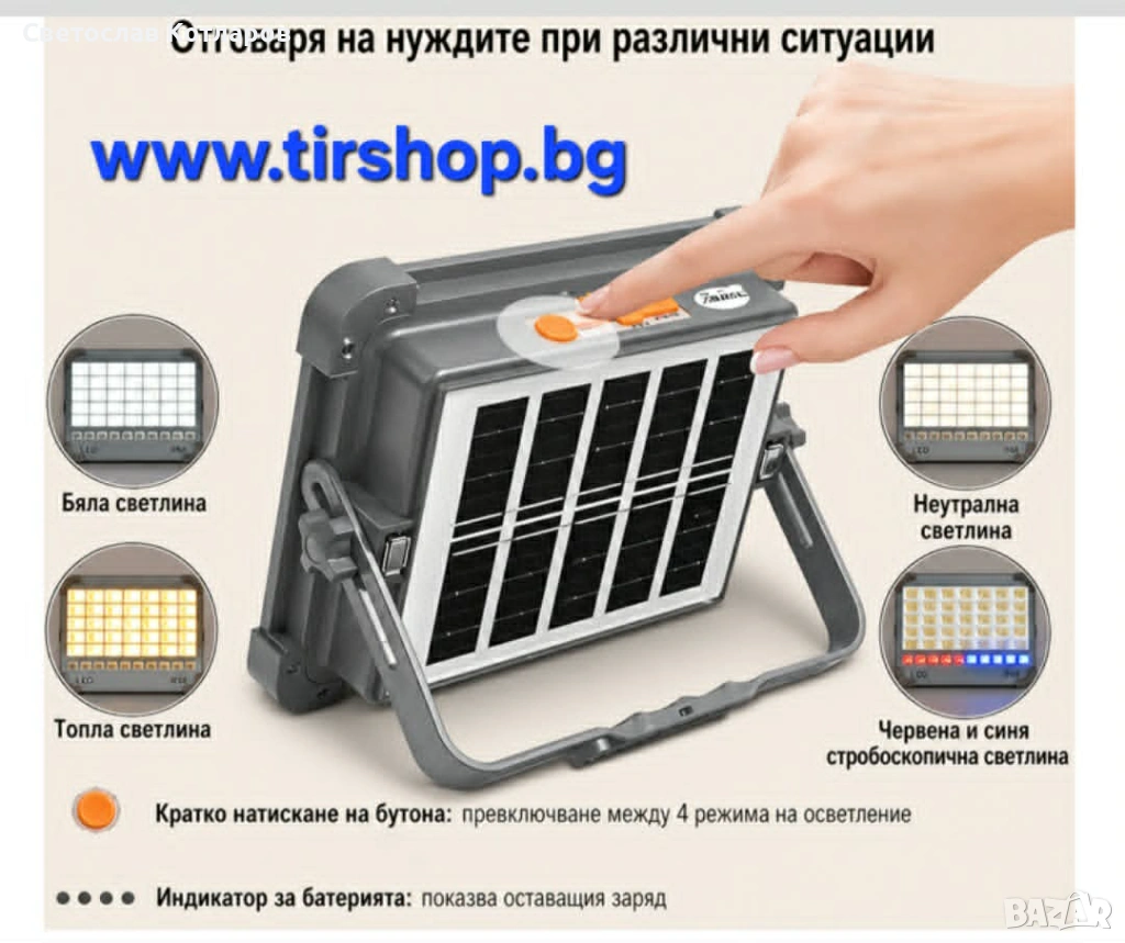 Няколко режима на осветление (студена, топла, неутрална светлина + SOS)
