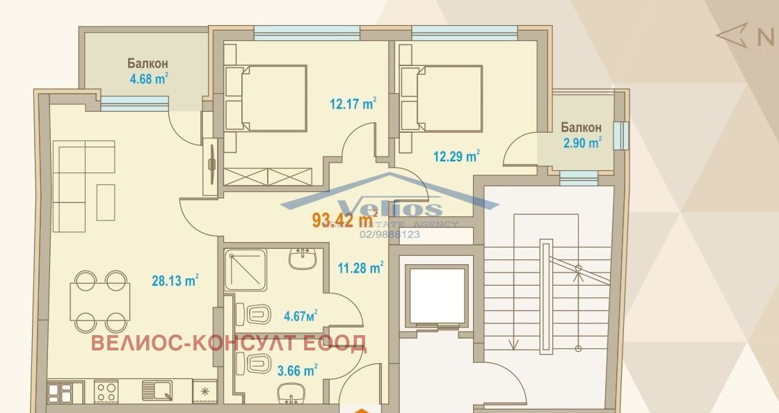 БЕЗ КОМИСИОННА ЗА КУПУВАЧА. Продава се 3-стаен апартамент в София, кв. Зона Б-18, бул.инж. Иван Иванов, в новострояща се сграда със срок на завършване 2028 г. Добра локация, в близост до множество спирки на градски транспорт, метростанция, трамваи, между четири основни столични булеварда. Апартаментът е площ - 129,09 кв.м с ид.ч/ 93,42 кв.м застр. площ. Намира се на ет.3 /14 със източно изложение. Състои се от: Дневна с трапезария и бокс- 28,13 кв.м., спалня- 12,17 кв.м., спалня- 12,29 антре- 11,28 кв.м., баня с WC- 4,67 кв.м., отделно WC- 3.66 кв.м два балкона - 4,68 и 2,90 кв.м. Сградата ще бъде изпълнена с фасада от най висок клас, висока енергийна ефективност и красив външен вид. Цена: 299 800 , за завършване до ключ. Възможност за покупка и на подземно парко място -35000 . Предлагаме и други апартаменти в сградата. Свържете се с нас за повече информация и организиране на оглед, на тел 0888806447