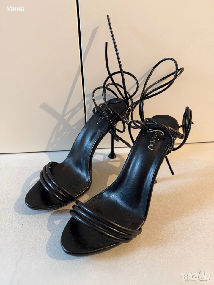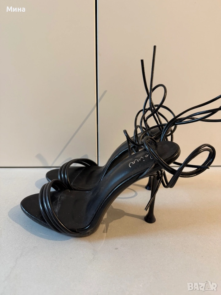 Черни обувки на ток с дълги връзки → Обява 54365715