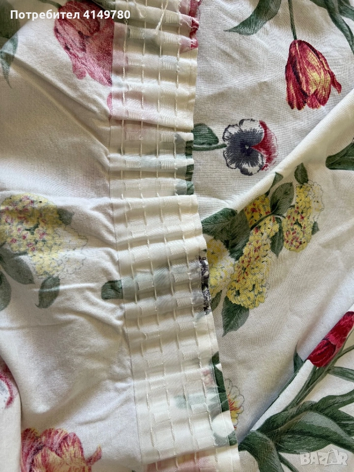 Завеси с рози 2 шт, размер 210(дължина) х 125 (ширина) има практически невидимо жълто пятно, изчезват при пране