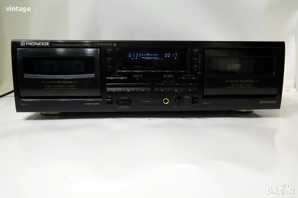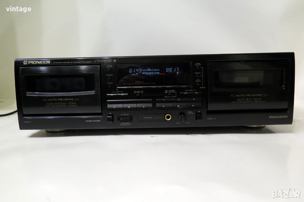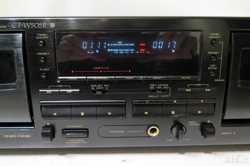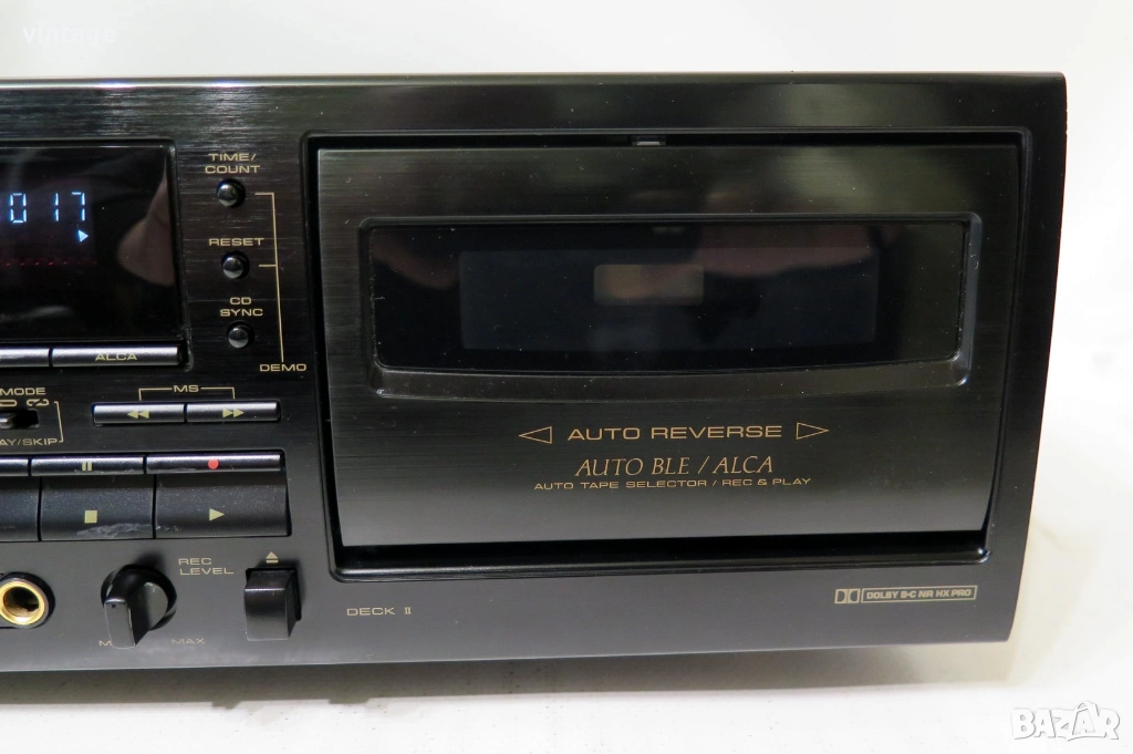 Двукасетен стерео дек, отличен технически (нови ремъци), много добър външен вид. Dolby NR B/C, FLEX (Frequency Level Expander), ALCA (automatic level control with tape analysis), TDNS (noise reduction during dubbing), Auto BLE. Приложените снимки и видео са реални!