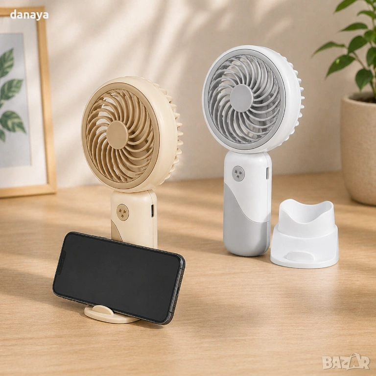 Функция: ръчен и настолен вентилатор със стойка за телефон