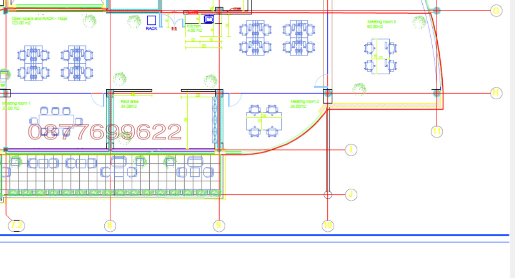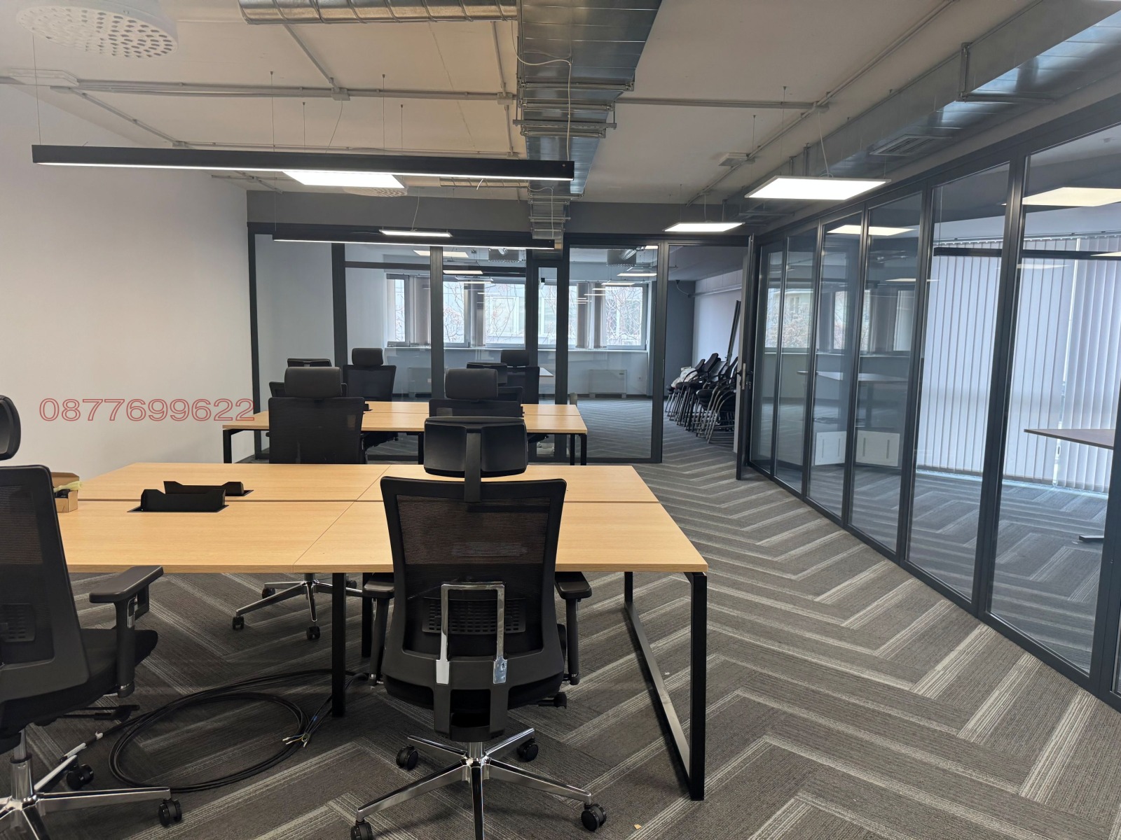Помещението се състои от 4 обособени работни помещения (които могат да се ползват и като зали за срещи) и отворено пространство с: