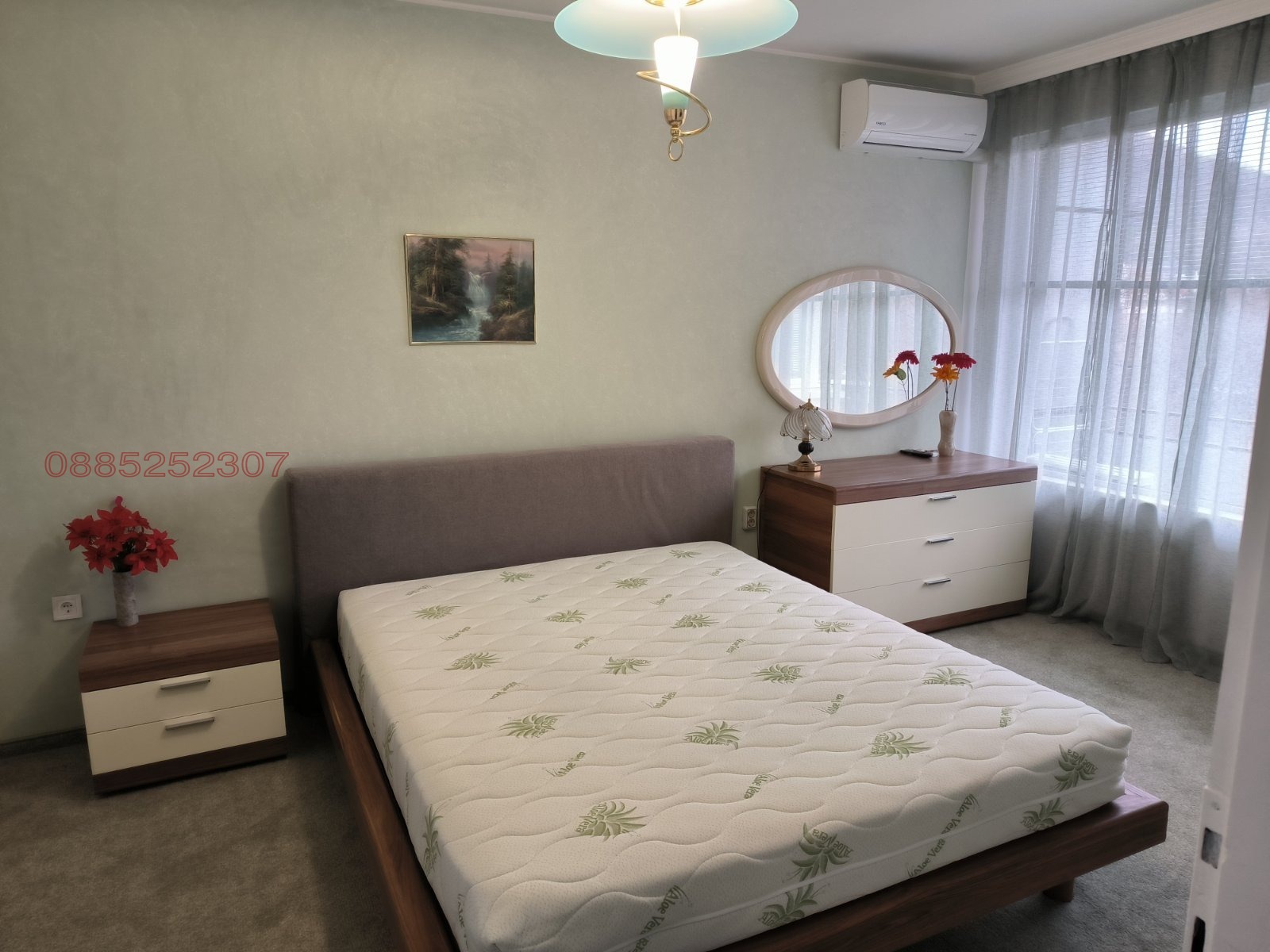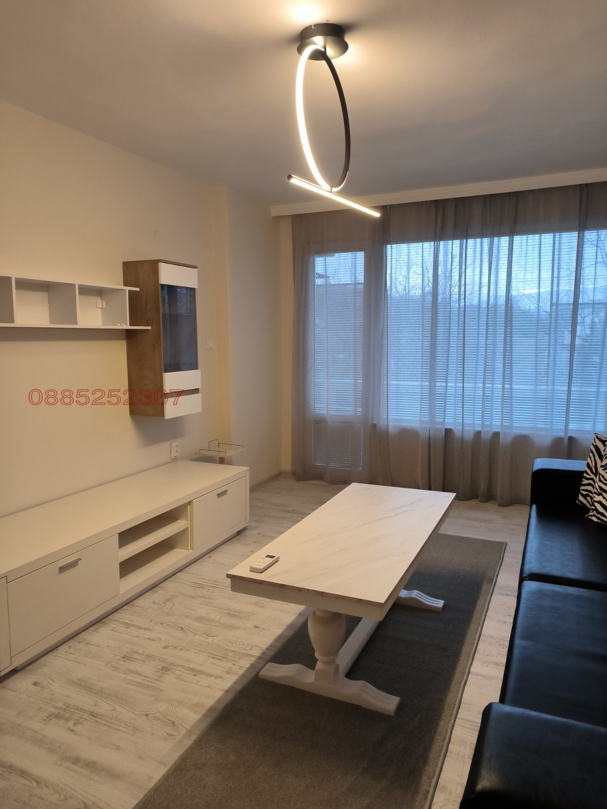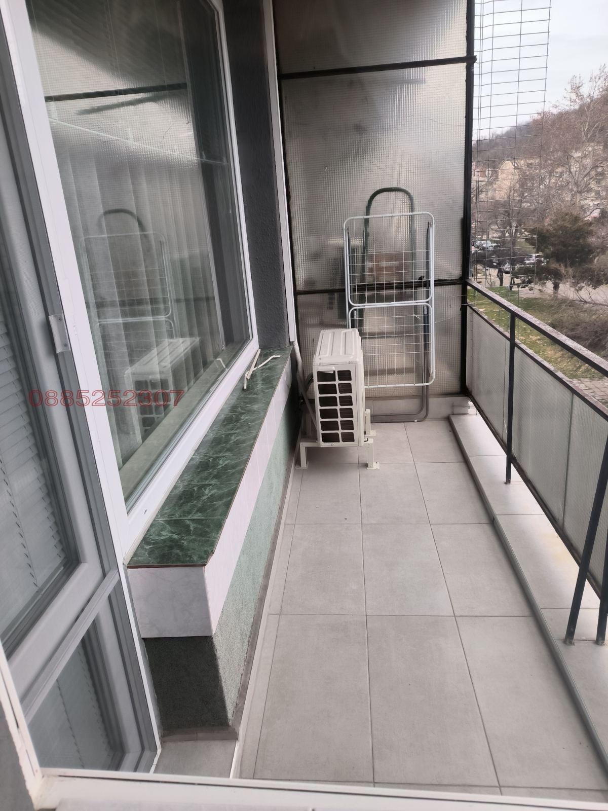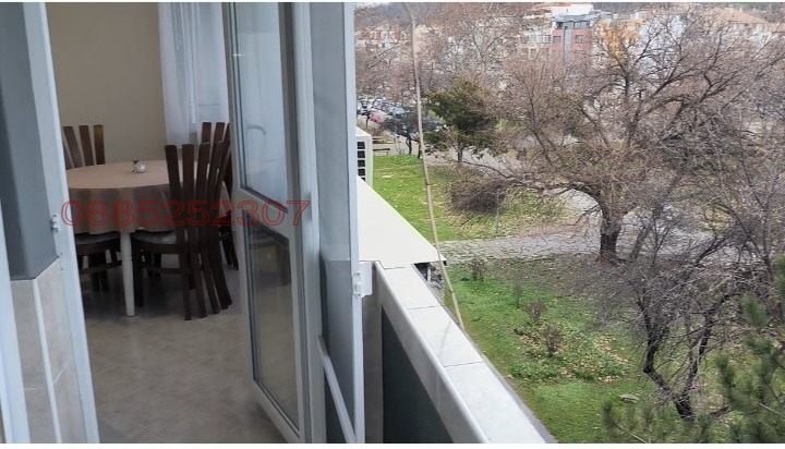 Има две тераси с изглед към Пещерско шосе и младежки хълм,всичко е южно изложение. Оборудвана кухня с нови ел.уреди-фурна,вграден аспиратор,миялна,пералня,хладилник,микровълнова фурна. Спалнята е обзаведена с италиански мебели, с мокет,голям гардероб и телевизор. Голям хол с Тв секция и италиански диван от естествена кожа 3м. В коридора има портманто+вграден гардероб.