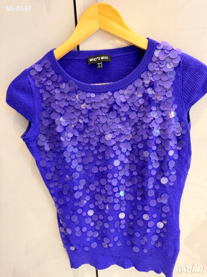 Прекрасна блуза с пайети от Италия. Използвана но рядко. Запазена.