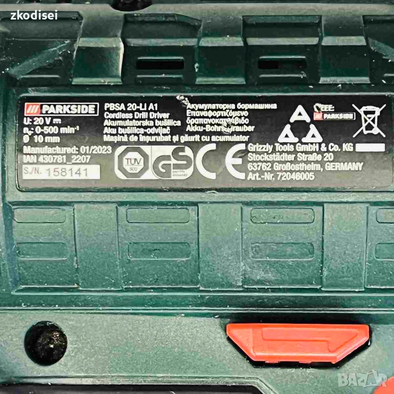 Акумулаторен винтоверт PARKSIDE PBSA 20 Li A1 → Обява 54368610