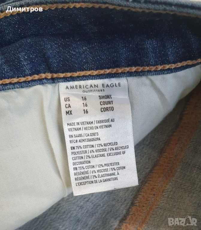 1. Дънки American Eagle, тип "потури", с ниско дъно - нови, с етикет. Размер XL, но ще станат на 2XL. Съдържат еластан. Размери :
