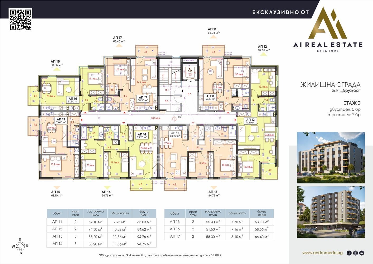Двустаен апартамент на среден етаж в новострояща се жилищна сграда на бул. България, в началото на ж.к. Дружба, който съчетава добра локация, функционално вътрешно разпределение и удобства, търсени в съвременното градско жилище.