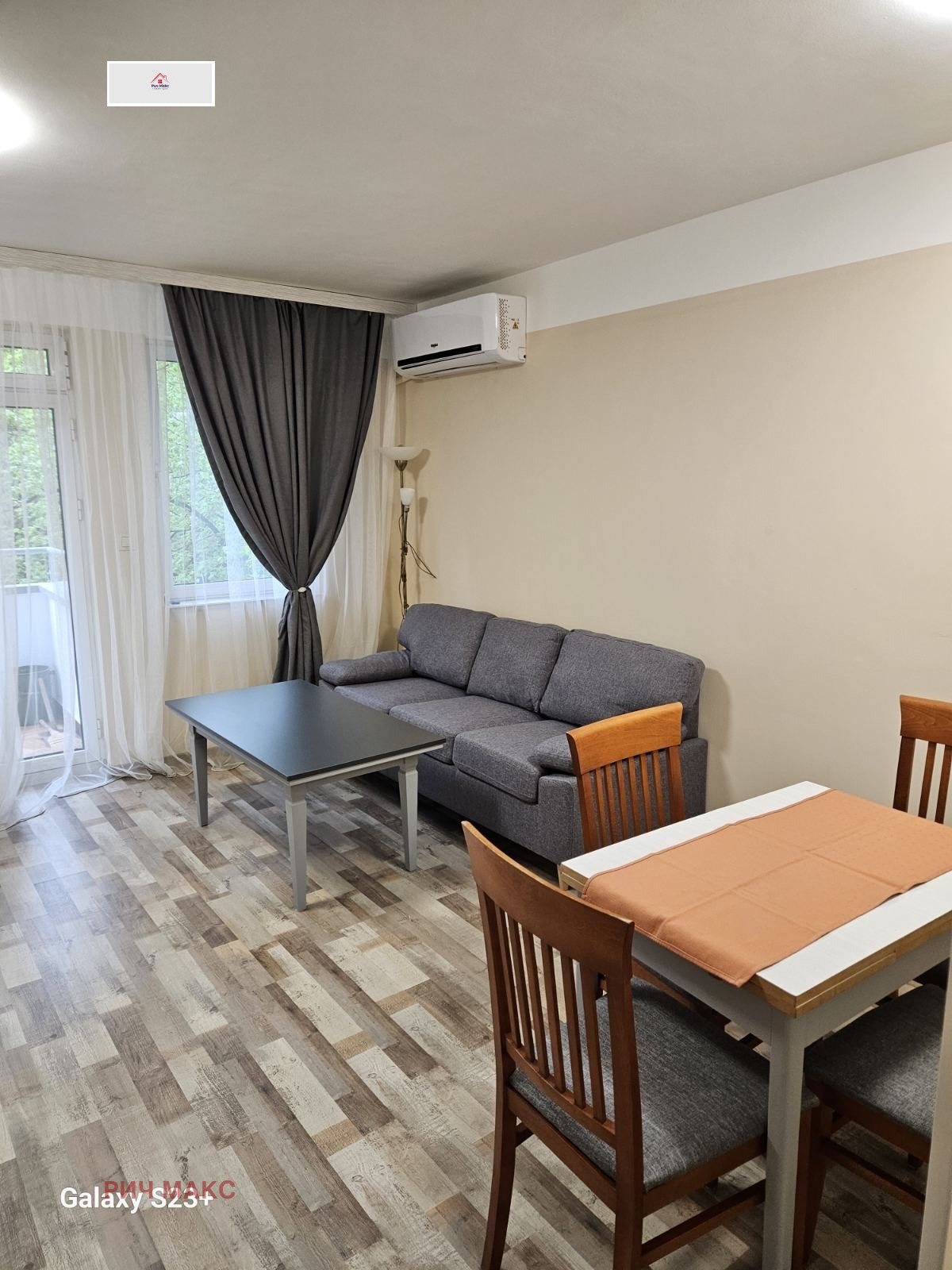 Предлагаме под наем стилен и просторен двустаен апартамент, съчетаващ модерен дизайн и уют. Функционалното разпределение включва антре, дневна с трапезария, кухненски бокс, спалня, баня с тоалетна и две тераси. Имотът е след основен ремонт, напълно обзаведен с нови мебели и оборудван с нови електроуреди, включително телевизор.