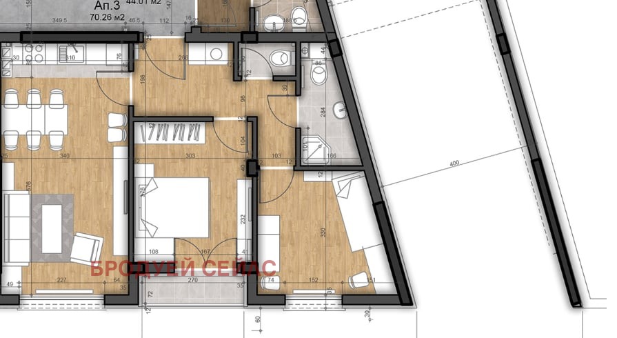 - Апартамента ще бъде завършен до ключ - боядисани стени, поставени подови настилки, интериорни врати и готови бани.
