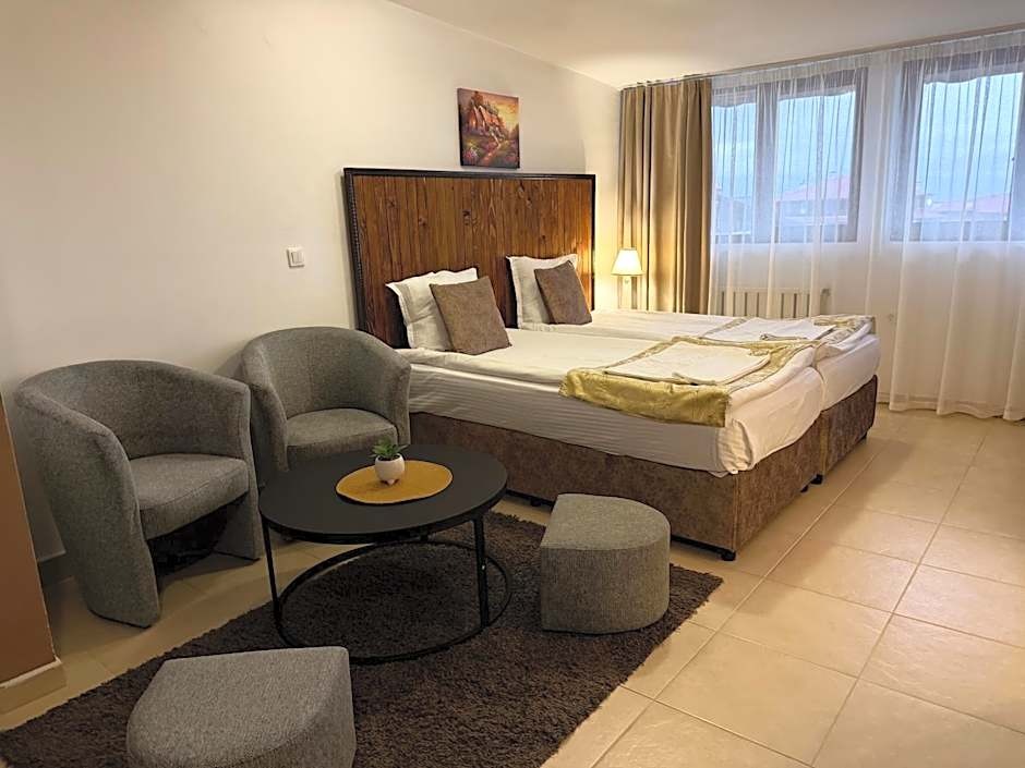 Превъзходен ваканционен комплекс и привлекателно място за любителите на ски и летния туризъм, заради отличната локация на хотела: само на 3 минути до кабинковия лифт и на 7 минути до стария град. Разположен в подножието на Пирин планина.