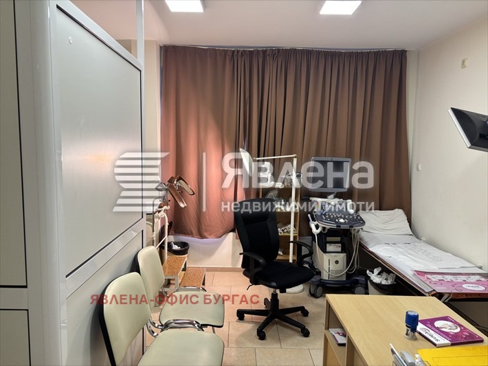 Агенция 'Явлена', отдава под наем помещениев к-с Лазур, със статут на лекарски кабинет. Квасратурата на помещението е 40 кв.м. без общи части, със следното разпределение: входно антре, стая тип чакалня, приемен кабинет и санитарен възел. Сградата е на две улици, което е прави много видима. Основни предимства: