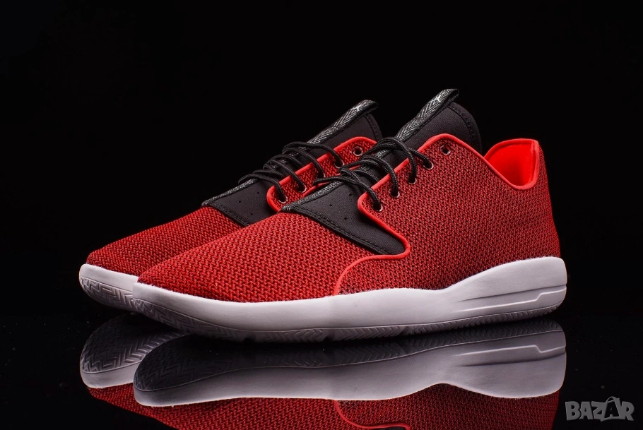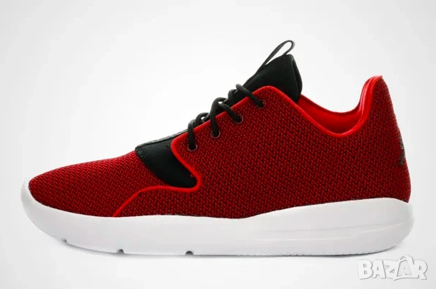 Jordan Eclipse в разцветка "University Red". Този модел е известен със своя минималистичен и лек дизайн, предназначен за ежедневно носене.